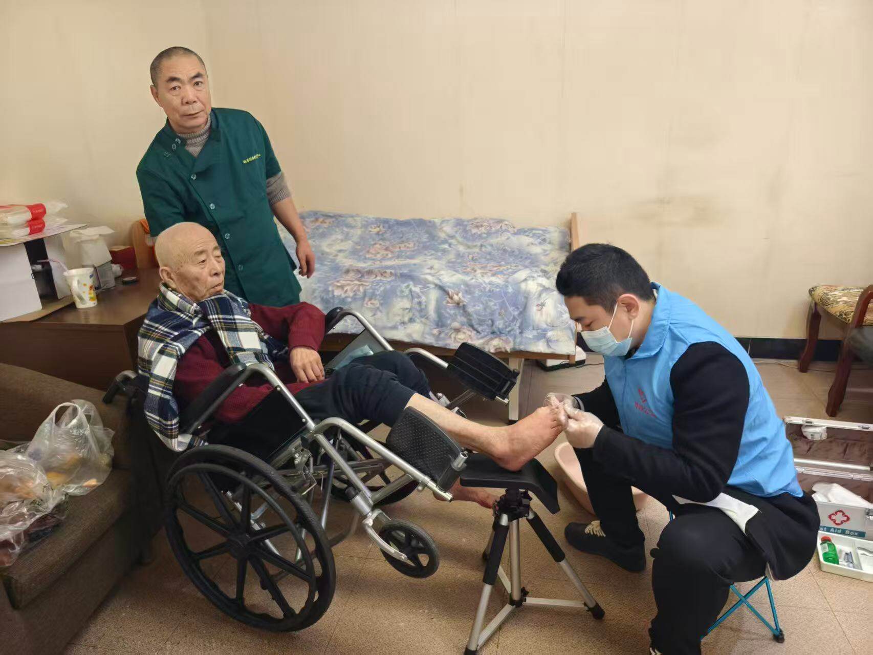 同时,敬老服务也在有序推进。市侨联侨心志愿服务团的志愿者们耐心为老人理发、按摩、修脚,手法娴熟又细致;鞍山何氏眼科医院的医护人员携带专业设备,为老人逐一检查视力、排查眼部健康问题,并现场讲解护眼知识;辽宁科技大学的志愿者们则主动坐到老人身边,握着他们的手拉起家常,倾听老人讲述过往故事,养老院里处处是温馨互动的画面。