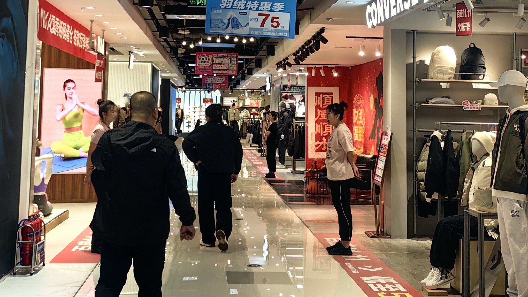在万达广场的羽绒服专柜,市民张女士正帮父母挑选长款厚款款式:“爸妈怕冷,必须试穿,看蓬松度和领口舒适度。这款2折后才800多,比去年便宜一半,刚想拿2件XL码,店员说店里目前刚好就剩这两件了,周末两天销量特别好。”