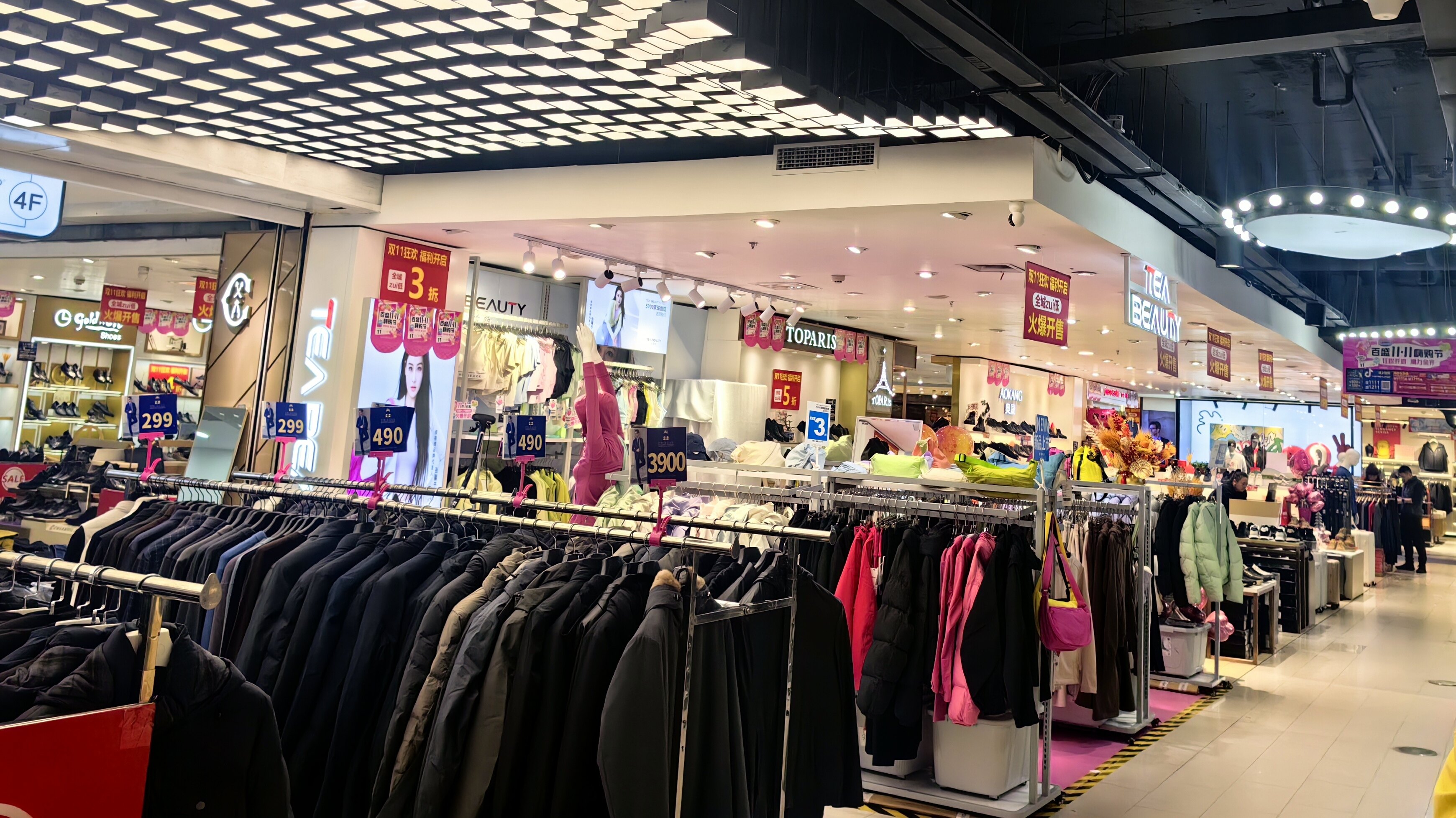 新玛特以“店庆+双11”双福利叠加为核心,打造“折扣+积分”双重优惠体系。美妆区推出“满减+多倍会员积分”政策;秋冬服饰区聚焦保暖刚需,长款羽绒服低至2折、运动冬装5折直降,还设置“断码特惠区”。万达广场主打“暖冬生活场景”,将购物与体验深度融合。家居专区、服饰区、餐饮区域均有优惠。同时,商场每日举办“随机舞蹈挑战赛”“皮草主题秀”等互动活动,兼顾购物与娱乐需求。万象汇聚焦“一站式便捷购物”,以通用优惠简化消费流程,推出“1111元美颜卡”“99元头皮护理新客套餐”满足不同肤质护理需求;零售全品类通用“满500减66元”优惠,且支持跨品类叠加银行支付立减(最高减88元),消费者可同时选购护肤品、服饰与家居用品。百盛购物中心以“11·11嗨购节”为主题,构建“预存+满赠+特色权益”立体优惠。折扣上全馆好货不止5折,抖音同步上线“1111元团1211元”券;预存活动分档设置,11月1日起每日10点后“存1111元得1711元”(含预存金、金券、美妆券及双礼包),8日起支付宝绑中国银行信用卡“存11110元得12710元”。