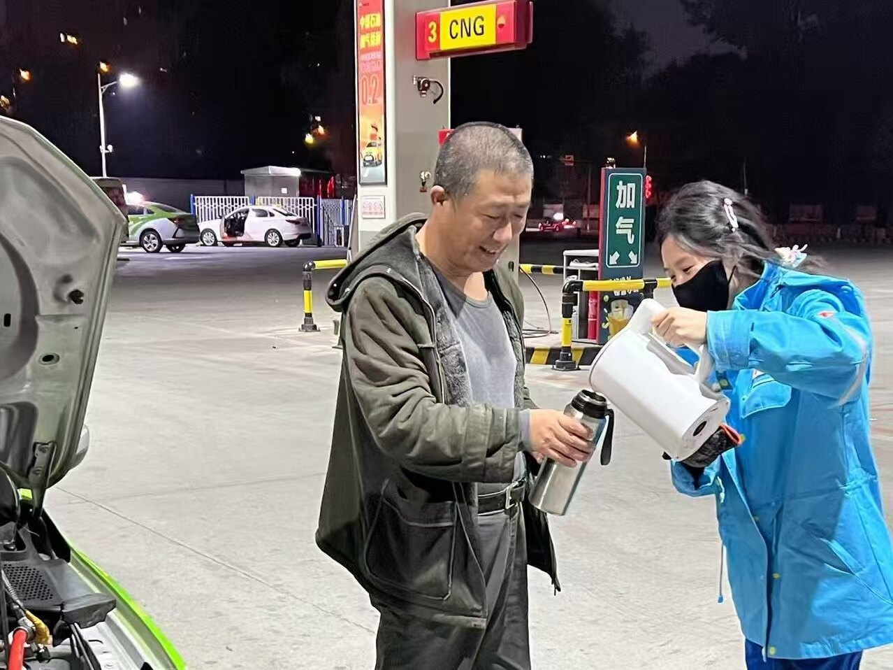 “这几天晚上确实冷,车里开暖气也容易口干。能在加气的间隙接一杯热水,真的很贴心。”出租车司机刘师傅是这项服务的常客。常年跑夜班,凌晨三四点是最难熬的时段,“来这加趟油、接杯水,歇一口气,感觉又能精神十足地跑上几小时。这份心意,对我们夜班司机来说特别珍贵。”据站内工作人员介绍,提供热水的初衷十分简单:“我们看到不少司机师傅自带水杯,就问他们需不需要加热水。慢慢地,这就成了我们站的一个固定服务。”为了让热水始终保持温度,站内还专门配备了暖壶,并安排员工定时添水、清洁,确保每一位顾客喝到的都是干净温暖的水。