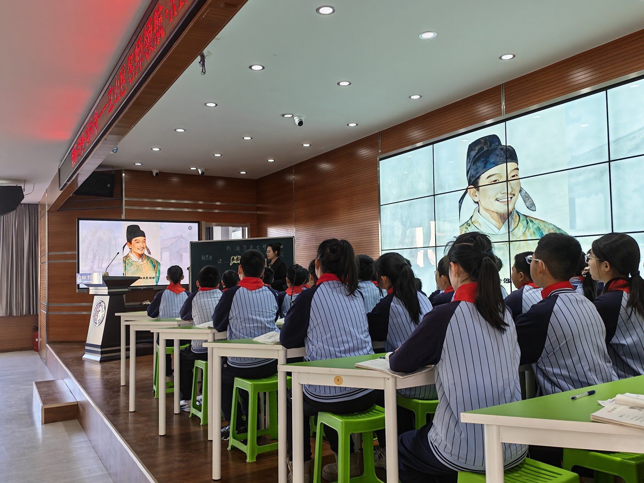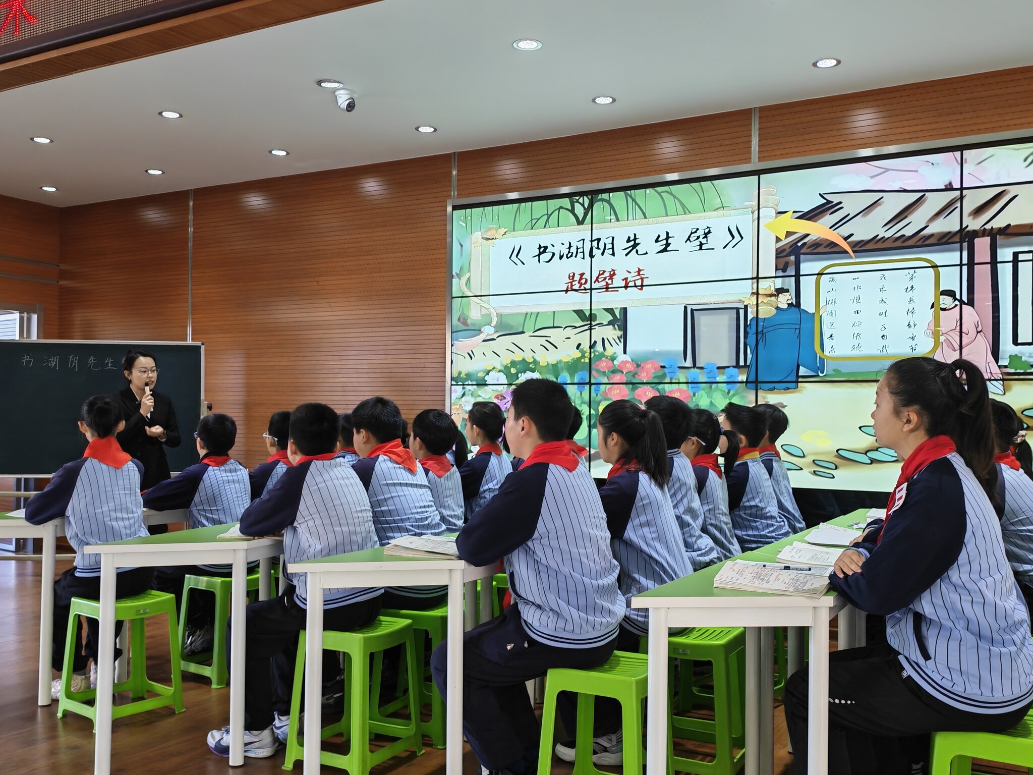 大会现场,多节AI赋能示范课与微课集中亮相,生动展现AI技术如何让课堂“活”起来。晨光小学的语文课《书湖阴先生壁》中,数字人技术还原了王安石创作场景,配合AI实时点评功能,营造出沉浸式古诗学习体验。孟泰小学数学课《可能性》教学中,DeepSeek制作的“数学大富翁”网页游戏,让学生在闯关互动中掌握概率知识,课堂参与度提升30%。AI技术在不同教育场景中都展现出独特价值。