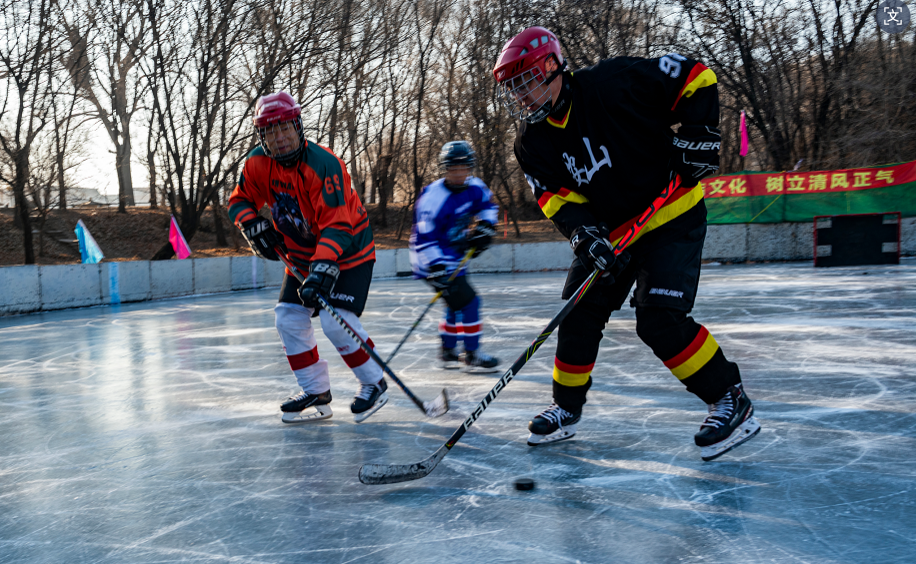 冬季是冰雪运动的季节,近日,在二一九公园的冰湖上,一群身着护具的冰球爱好者们挥动着球杆,在冰面上追逐着那颗小小的黑色球体,碰撞声、呼喊声与冰刀划过冰面的清脆声响交织在一起,演奏了一曲动听的冬日运动交响乐。