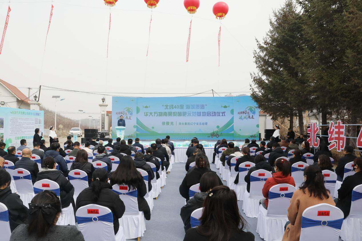 变革的种子,早在春天就已埋下。春季的微风拂过嫩绿的梨芽,农技人员和华大集团的科研团队正蹲在田垄间调试菌肥配比,“北纬40度 海城质造”菌肥示范基地在此正式启动。“海城是‘世界镁都’,土壤里镁、钙、钾矿物质含量高,我们研发的专用菌肥,能和这些矿物质形成协同效应,既改良土壤,又能提升果子品质。”华大集团的技术员一边记录数据,一边向围拢过来的果农讲解。围在一旁的老果农忍不住插话:“种了半辈子梨,头一回见这么讲究的施肥法,以前全凭老经验,这下跟着科技走,心里更有底了!”