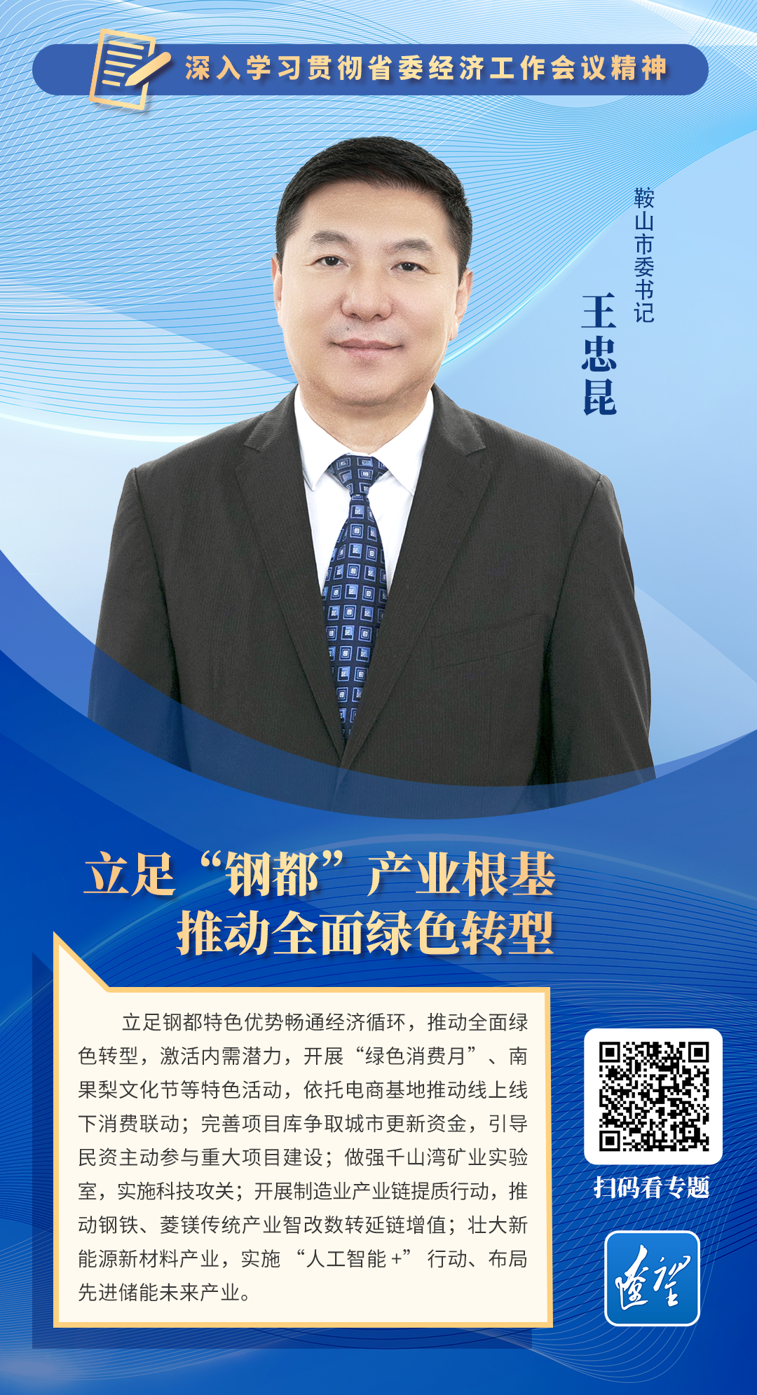 王忠昆说,关键要锚定目标、实干笃行,把省委经济工作会议精神转化为推动鞍山高质量发展的具体实践。立足“钢都”产业根基,以高质量发展统揽全局,保持战略定力,抢抓发展机遇,凝聚奋进力量,确保“十五五”开好局、起好步。