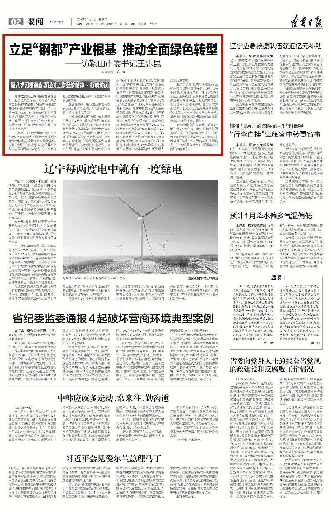 王忠昆还介绍,鞍山将推动全面绿色转型,高标准打好蓝天、碧水、净土保卫战,推进绿色矿山建设,打好科尔沁沙地歼灭战,发展新能源、清洁能源及节能环保产业。大力保障民生,实施稳岗扩容提质行动,扎实办好民生实事。以底线思维统筹发展和安全,深化安全生产治本攻坚三年行动,重点推进落后化工装置改造和矿山排查整治,维护社会大局稳定。