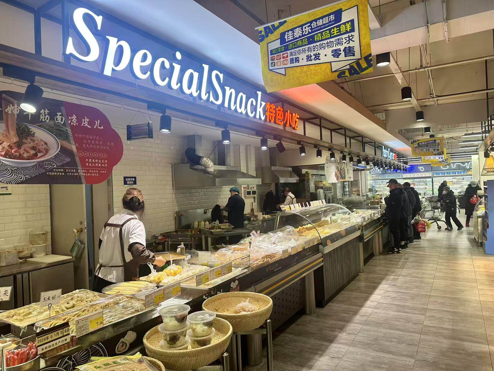 佳泰乐超市凭借其供应链优势,将超市内的美食档口变身为社区食堂,每日为辖区老年人直供新鲜食材,确保餐品品质与安全。超市负责人表示:“作为社区共建单位,我们很高兴能发挥自身优势,切实为长者提供放心、实惠的用餐服务。”