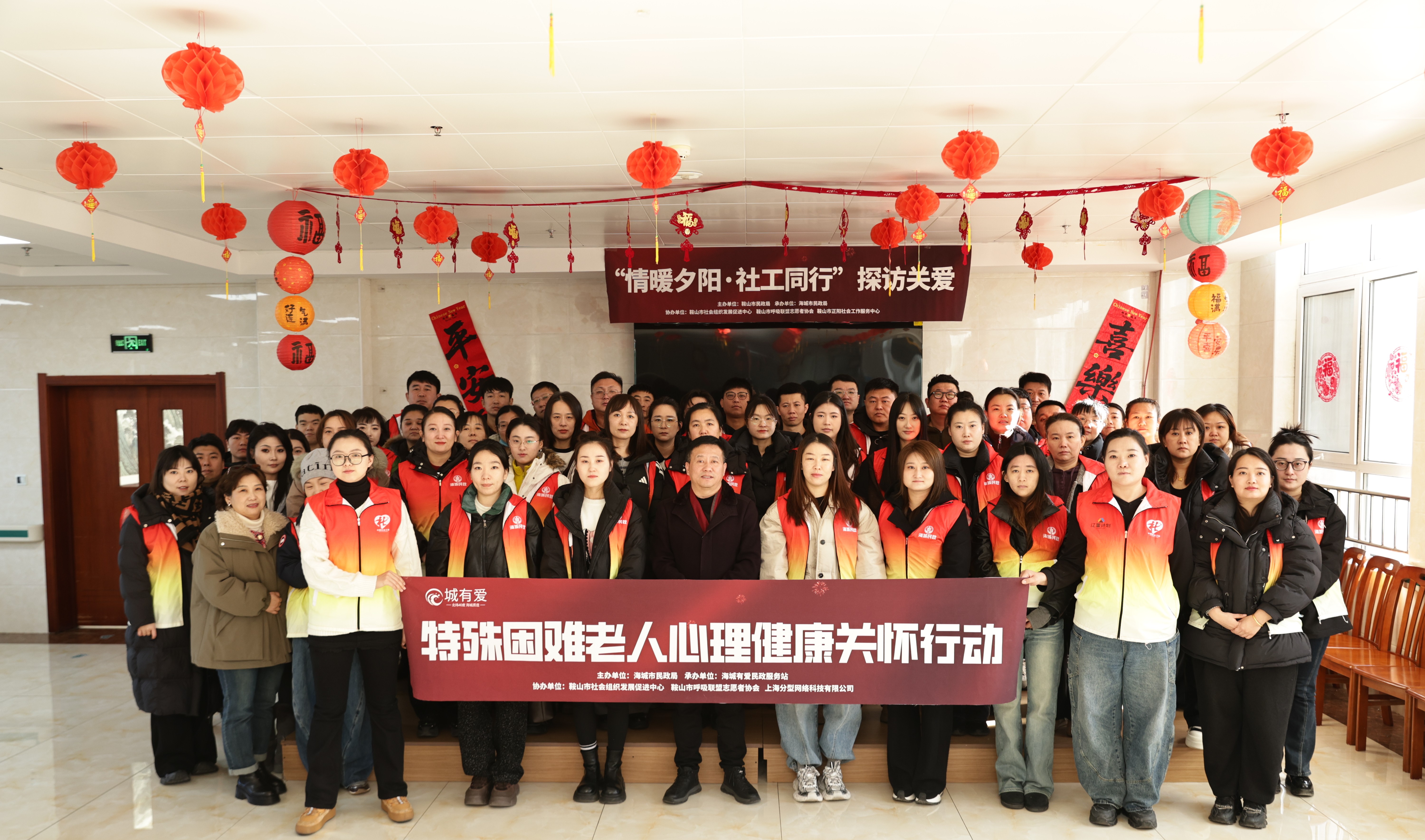 1月7日上午,我市“情暖夕阳·社工同行”探访关爱项目暨海城市“特殊困难老人心理健康关怀行动”启动仪式,在海城市海西新城社会福利中心举行。这意味着,海城6000余名特殊困难老人将迎来身心双重关爱服务,标志着我市在精准救助为老服务方面迈出了坚实一步,为全国老年人关爱工作提供了可复制的经验。