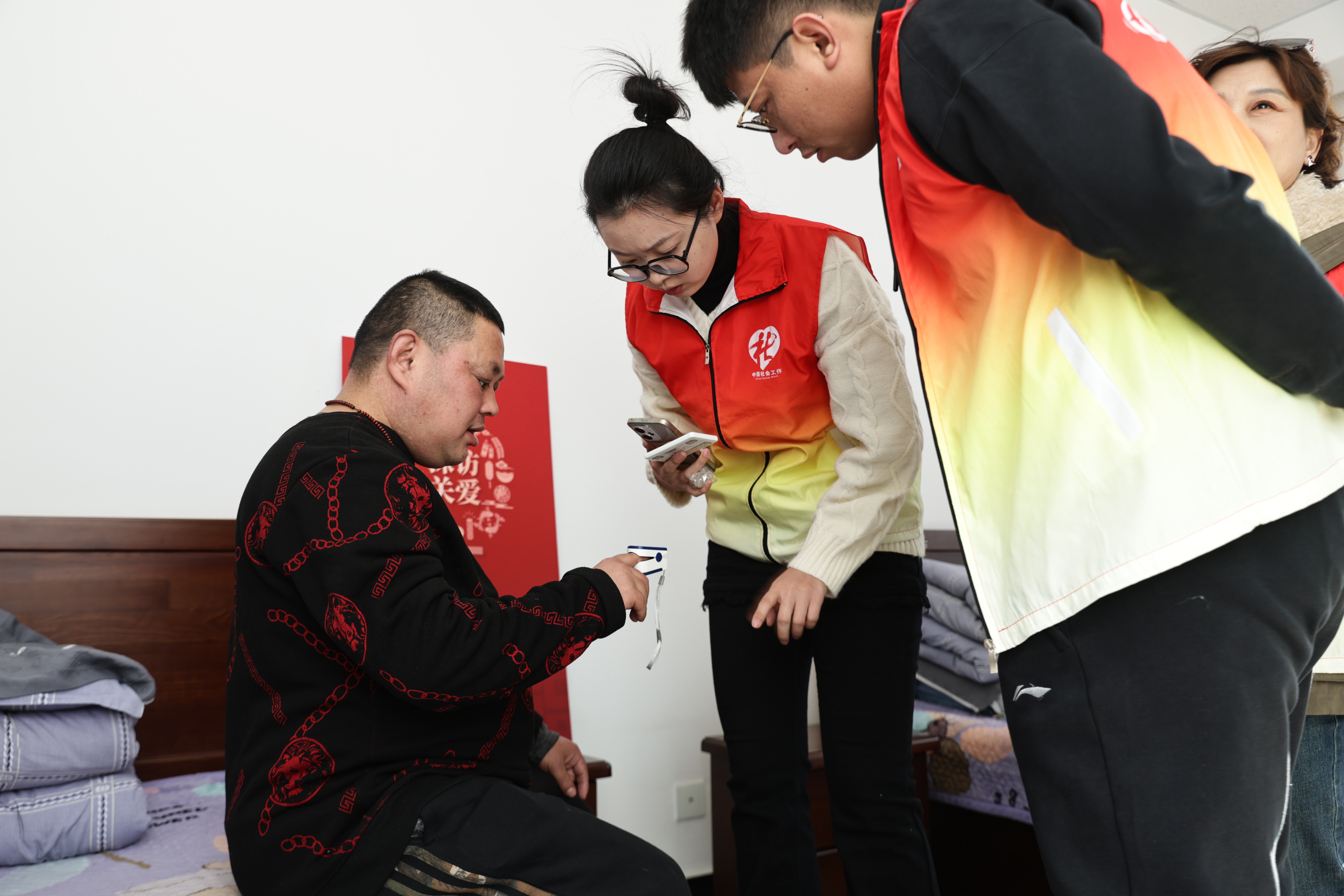 该项目核心是给特殊困难老人提供“心理+身体”双重关怀。心理方面,用专业的SCL-90症状自评量表,从身体不适、强迫行为等方面,全面了解老人的心理状态,再针对性制定干预方案;身体方面,会给1500名有需求的老人做心脏健康筛查,还会为3000名老人提供血氧监测服务。同时,项目还整合了社工、志愿者和社会慈善资源,建立了“评估—介入—跟踪”的闭环机制,确保每一项服务都能精准送到老人身边。
