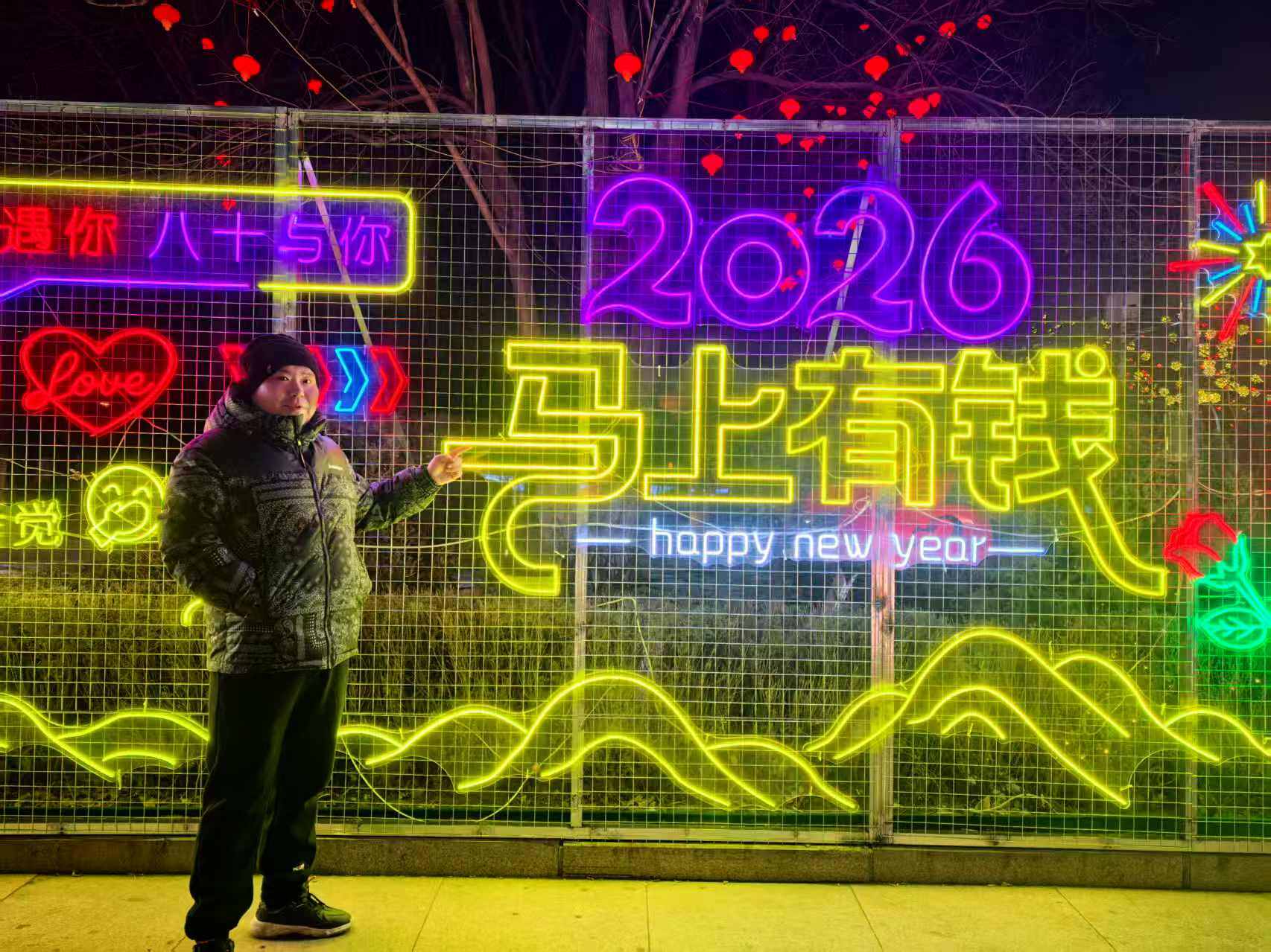 19日晚,夜幕降临,铁西区永乐公园正门周边灯火渐次亮起。五块电子网红墙组成的75米光影长卷,以暖红与亮黄交织的色调流转闪耀,“这一刻我在铁西等你”“2026马上有钱”等潮流标语与硕大“福”字相映成趣,将冬日夜晚装点得暖意融融。这处新晋网红打卡地,是铁西区2026年新春亮化工程的点睛之笔,更是城市管理与民生温度相融的生动写照。