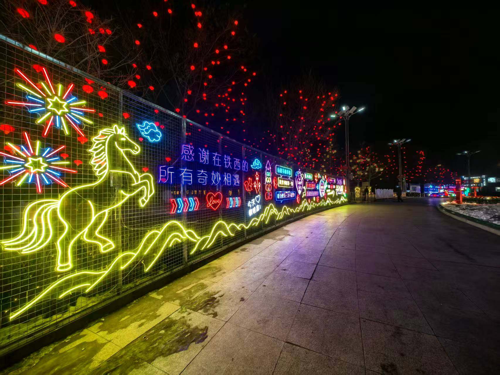 这75米网红墙并非孤立景观。近年来,铁西区持续推进城市管理,从永乐公园照明升级、增设休闲座椅,到主干道彩灯装饰,一系列民生工程汇聚成幸福暖流。如今,网红墙与公园内银杏步道“火树银花”彩灯、民生西路中国结灯饰串联成线,构建起多层次、立体化夜间景观体系,让市民在光影中触摸城市发展温度。作为老工业城区,铁西正以这类民生项目为抓手,不断焕发青春活力。