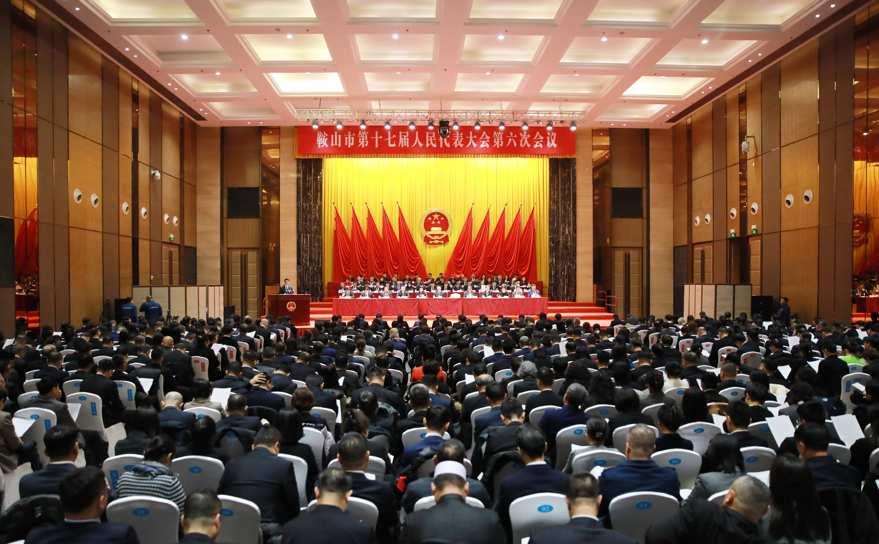 在庄严的国歌声中,鞍山市第十七届人民代表大会第六次会议隆重开幕。