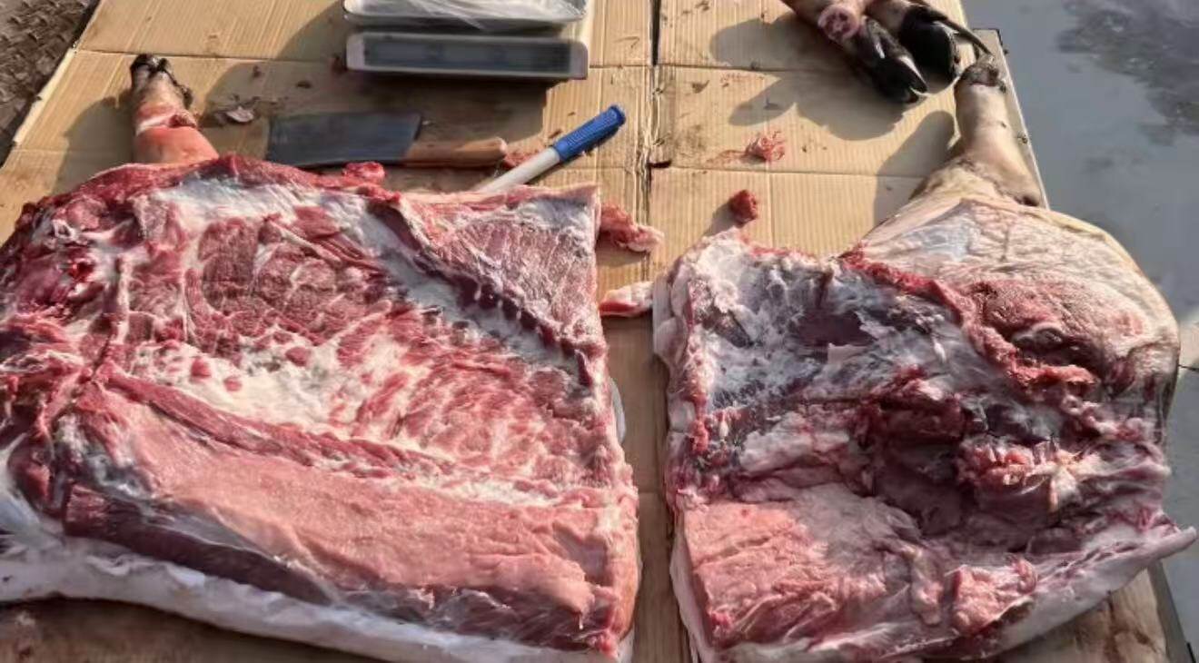 在程先生家门口设置的临时售卖点,刚分割好的黑猪肉整齐地码放在木板上。与普通猪肉相比,这里的黑猪肉呈现出类似牛肉的鲜红色泽,脂肪分布均匀,纹理清晰,浓郁的肉香扑面而来。“这肉的颜色就是不一样,看着就新鲜!”正在挑选的市民刘女士告诉记者,“我去年就买过他家的黑猪肉,炖出来肥而不腻,瘦肉也不柴,孩子们抢着吃。今年特意提前来订,就怕晚了没货。”