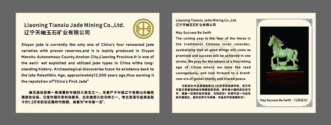 此次参展的《马到成功》《玉屏览绣》《琴韵风雅》三件作品,正是天岫玉矿践行“由简单卖玉石原料向卖文化创意作品转变”战略转型的生动缩影。三件作品既坚守国家级非物质文化遗产的技艺精髓,将传统玉雕的精工细作发挥得淋漓尽致,又融入新颖时尚的创新设计理念,做到了传统与现代的完美融合、技艺与文化的同频共振。尤为巧妙的是,作品所承载的“对话、传承、创新”内涵,与达沃斯论坛“对话的精神”主题不谋而合,成为跨文化交流的绝佳桥梁,让各国精英在方寸玉件间,读懂中国文化的包容与深邃。