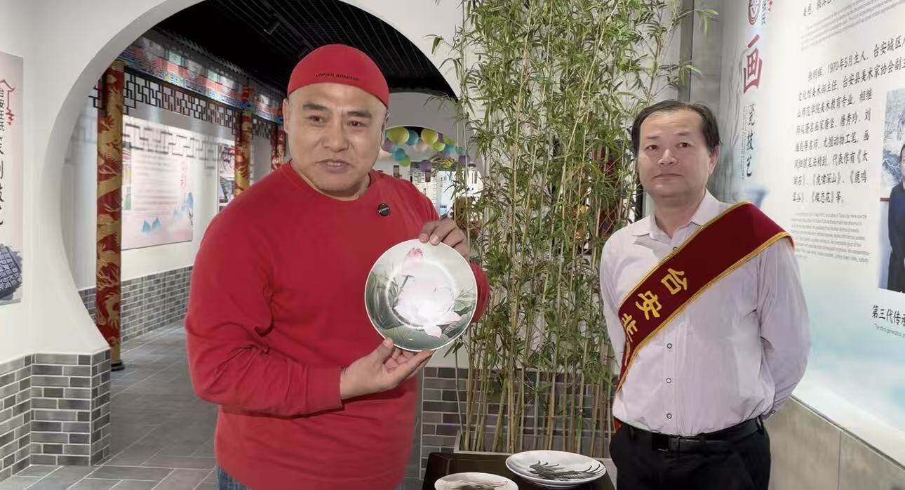 从柳编工艺展区里需经“选料、去皮、晾晒、编织、整形、上油、晾晒”七步而成的簸箕、花篮,到李氏豆油展区中沿用百年的物理压榨器械,再到古建彩绘展区里色彩斑斓、纹样精巧的“旋子彩画”,黑子沿着展厅一路细细观赏,不时停下脚步与传承人攀谈,询问技艺的传承现状与发展困境。他掏出手机,认真拍下每一件展品、每一个工艺细节,还主动与多位传承人互留联系方式:“以后我去外地拍戏,走到哪里就把台安非遗的故事讲到哪里,跟剧组的同事们好好推介家乡的这些‘宝藏手艺’,让更多人知道,台安不仅有好山好水、淳朴民风,还有这么多值得骄傲的传统技艺!”