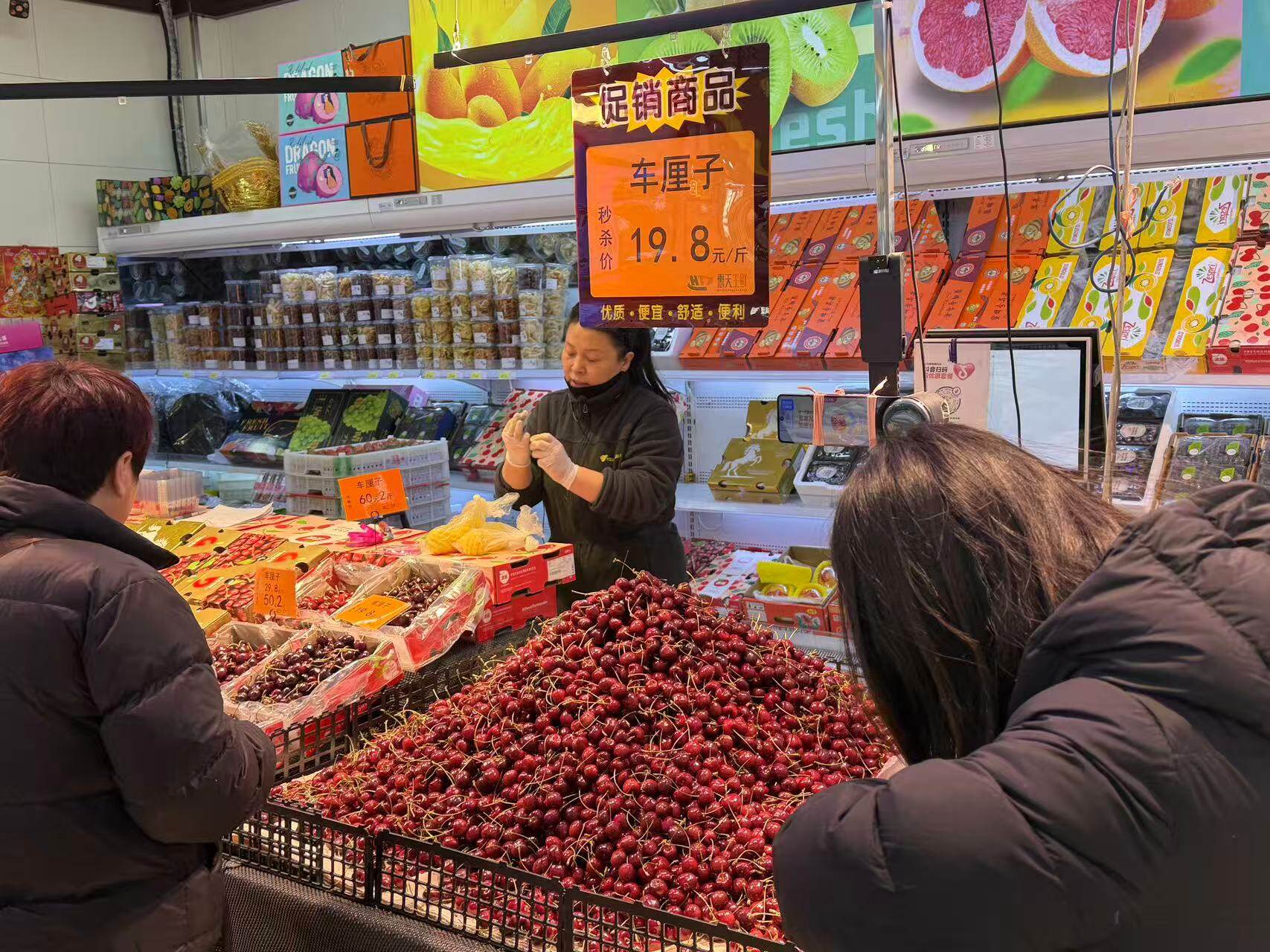 超市水果区负责人李女士表示,进入腊月以来,车厘子销量持续攀升。相比往年,今年市民更倾向于选择散装产品:“散装车厘子可以按需购买,避免了礼盒装的包装溢价,也减少了浪费。最近我们每天补货两次,日均销量能达到平时的3倍。”