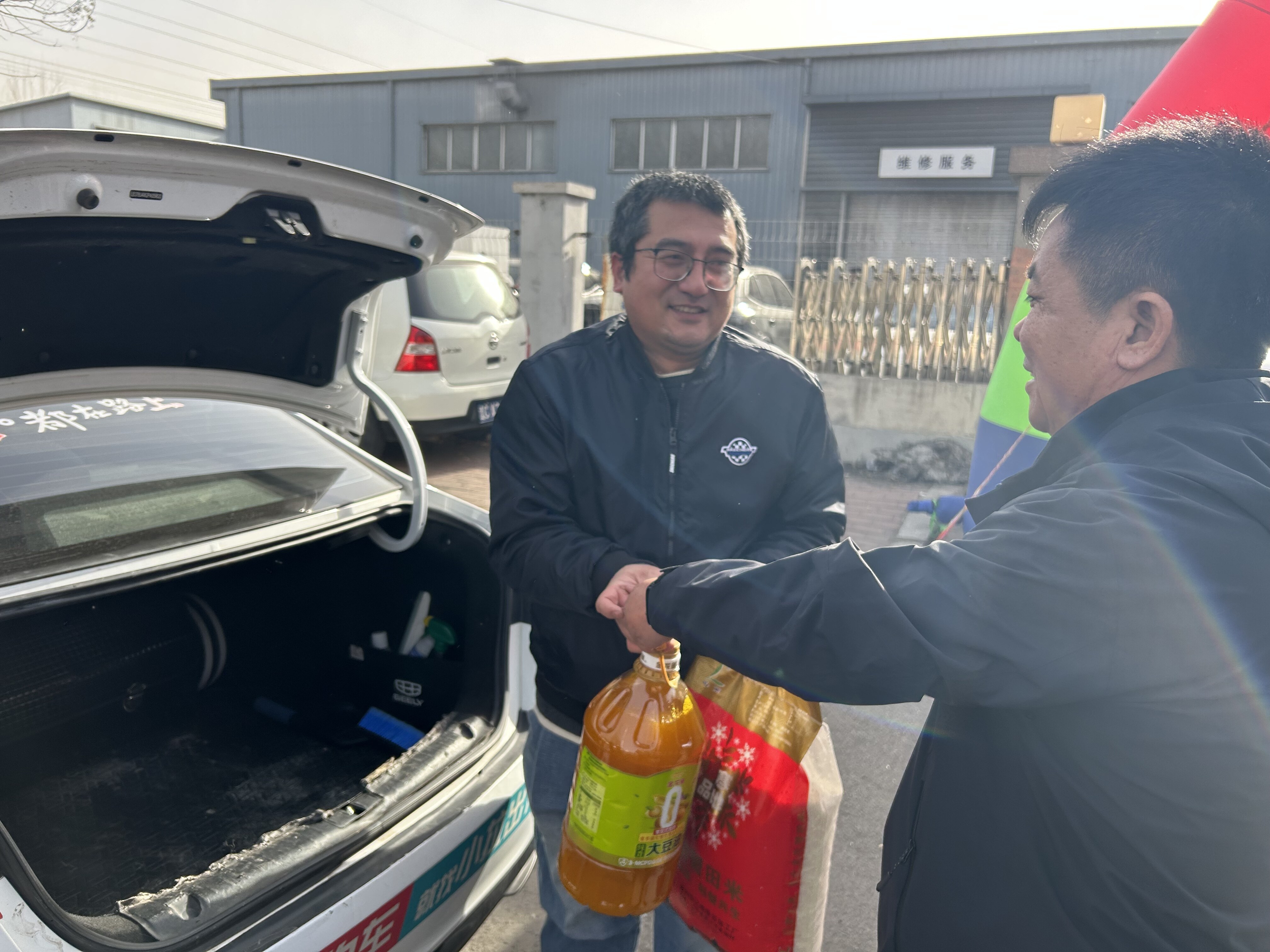 几位司机刚跑完单子,匆匆赶来领取礼包。脸上还带着奔波的倦意,可一接过礼品,疲惫就消散了大半,纷纷露出了朴实的笑容。“公司太贴心了,既有过年能用的年货,又有跑车刚需的玻璃水,让我们有归属感。”