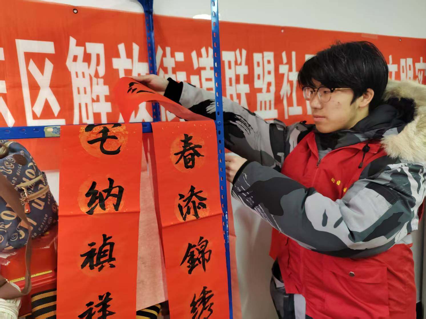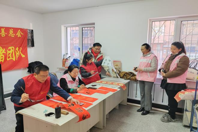 活动在分会“翰墨飘香”公益书法班举行,退休老科技工作者、书法教师迟春智带领书法班中小学生学员与志愿者现场挥毫泼墨。凝神运笔间,一笔一划尽显书法韵味,不一会儿,一副副寓意吉祥的春联、一个个苍劲有力的“福”字跃然纸上。分会会长王秀文与志愿者一同将40副写好的春联和福字送到居民手中,让暖心祝福直达群众身边。