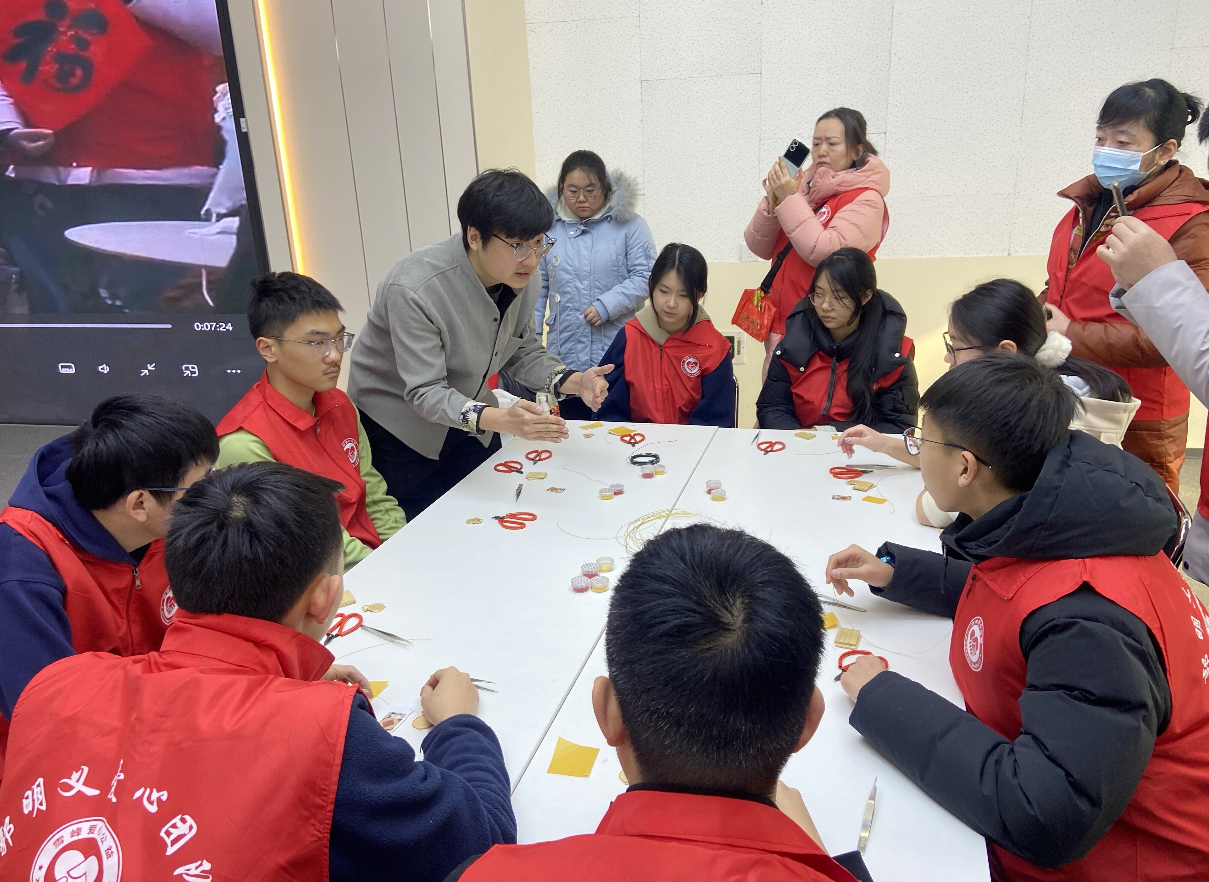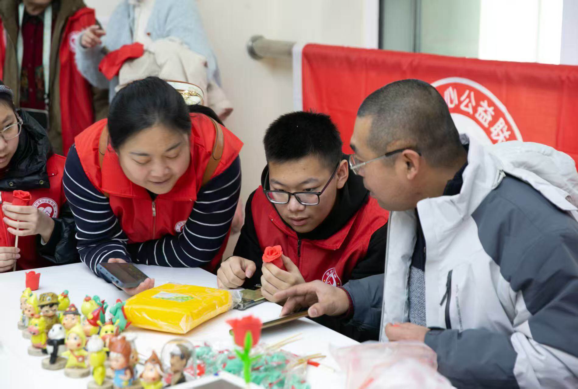 7日,活动启动当天,五位来自市民间文艺家协会的非遗导师们现场开设非遗技艺体验小课堂,手把手指导大中小学生打磨福礼。从剪纸的精细剪裁、掐丝珐琅的丝料勾勒,到书法福字的笔墨运笔、面塑生肖马的造型塑造,传承人耐心讲解技艺要领,学子们热情参与、用心创作,一件件饱含年味与心意的马年非遗福礼陆续完成。随后,爱心团队志愿者们迅速行动,将福礼分类整理、精心打包,为后续走访慰问做好充分准备。