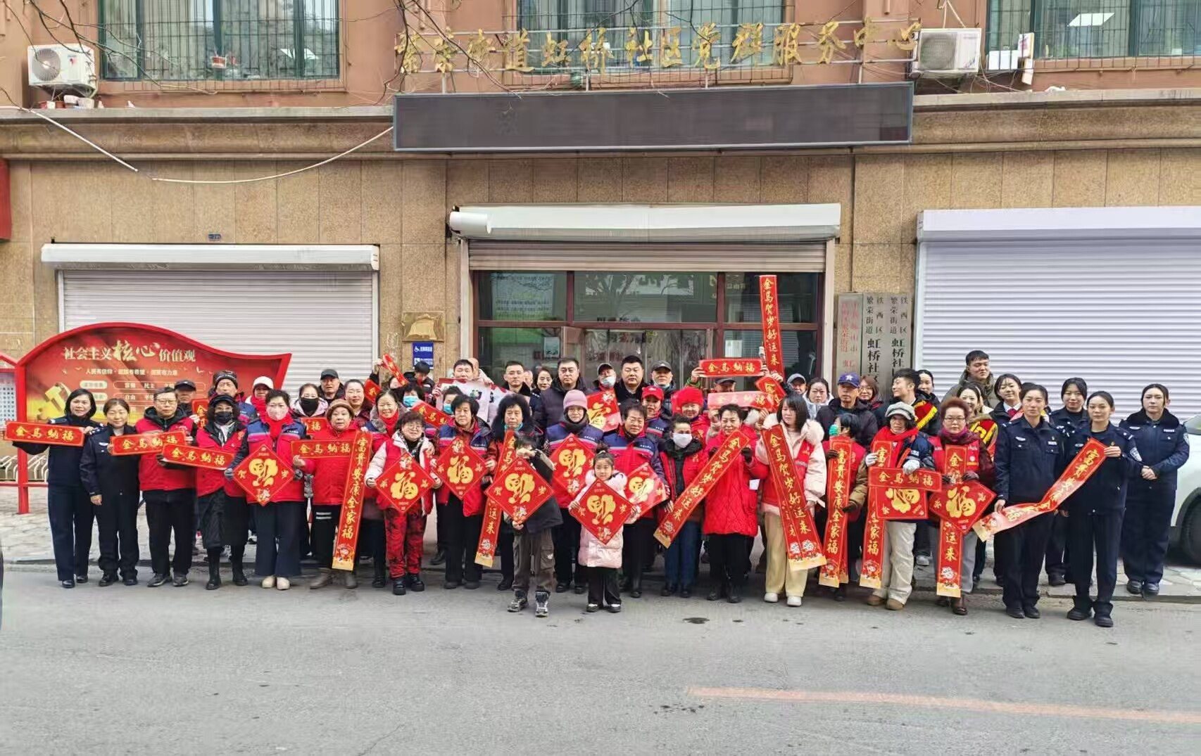 10日,恰逢农历小年。铁西区繁荣街道虹桥社区党委紧扣传统民俗,联合繁荣派出所、何氏眼科、繁荣卫生院、盛京银行鞍山铁西支行多家单位,共同开展“迎新春、贴春联、暖民心 社企联动过大年”主题活动,以一抹抹喜庆的“中国红”,为辖区居民送上浓浓的新春祝福,让小年的暖意浸润社区每个角落。