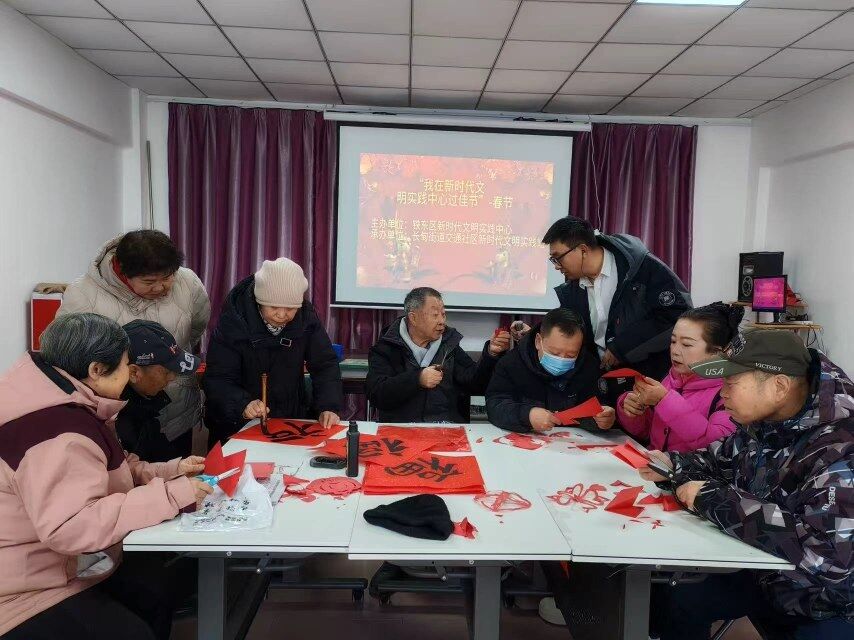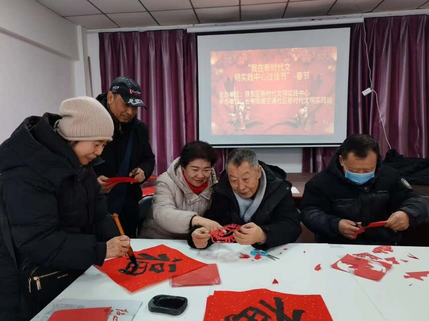 为传承中华优秀传统文化,营造喜庆祥和的新春氛围,丰富群众精神文化生活,10日,铁东区长甸街道交通社区举办“写春联、剪窗花”迎新春民俗活动,让大家在笔墨丹青与巧手剪纸中感受浓浓年味,共迎新春佳节。