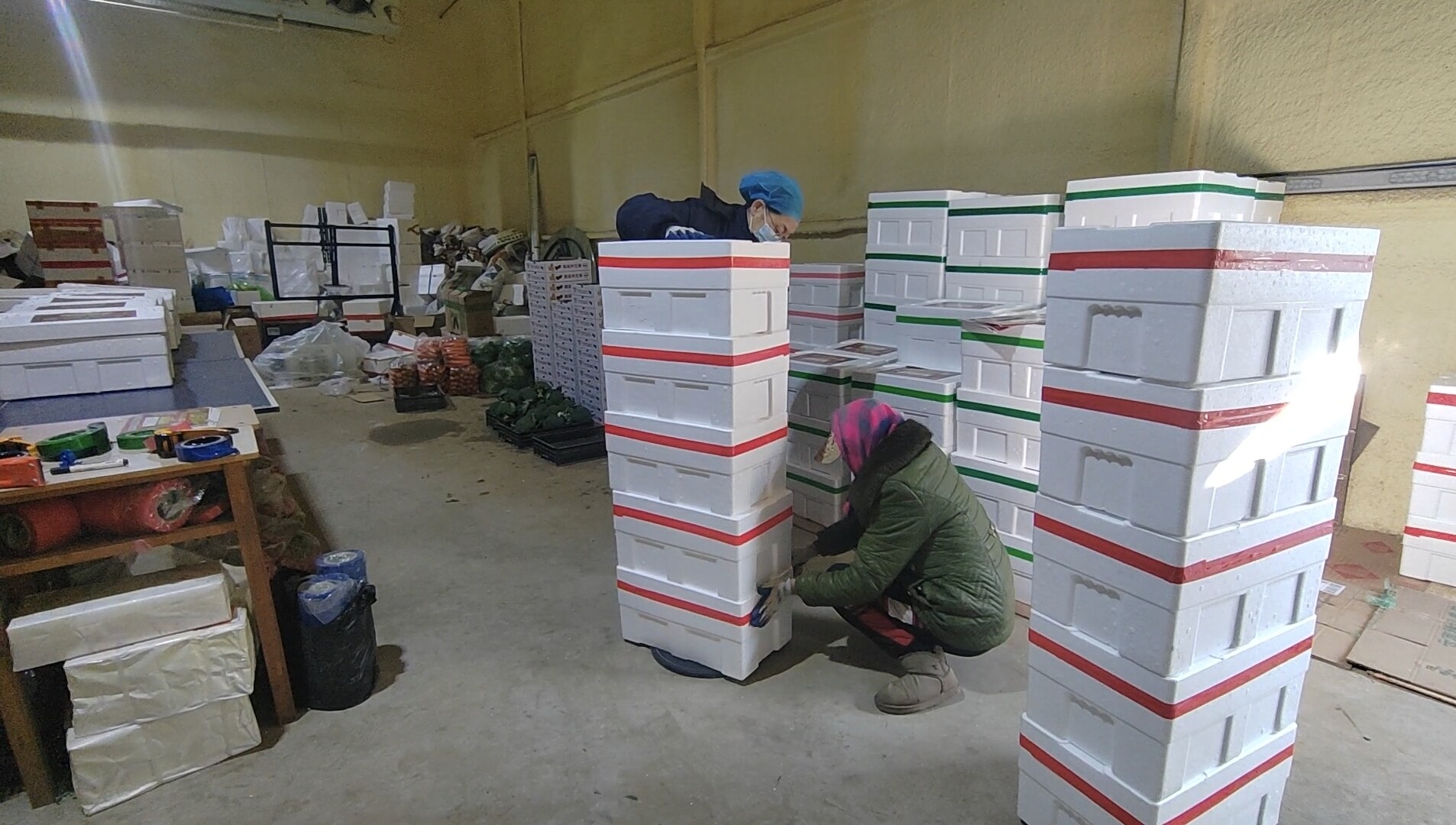 从新立村出来,记者来到位于达连村的马倩蔬菜种植专业合作社,这里的年味更浓、忙意更甚。车间里,工人们分工协作,择菜、清洗、装盒、封箱,辣椒、黄瓜、芸豆、番茄、芹菜等二十余种新鲜蔬菜,被精心打包成新春蔬菜礼盒,每一盒都透着新鲜与喜庆。“吉林的订单核对好了,黑龙江的礼盒也装完了,今天下午全部发走!”合作社负责人马倩一边对着手机确认订单,一边笑着向记者介绍,新春礼盒的订单早就排满了,不仅有本地企业批量预订,更有吉林、黑龙江等地的客商慕名采购,“咱温香的棚菜,现在走出辽宁,香飘东北了!”