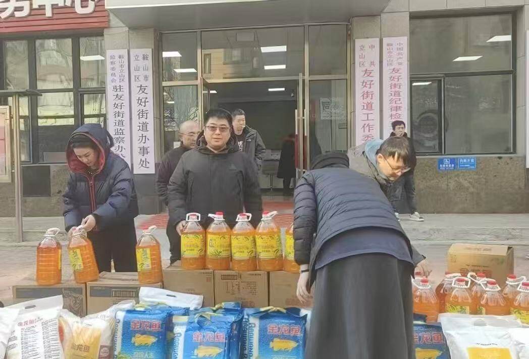 民进鞍山市铁西区支部会员走进社区,为困境学生送去学习用品和米、面、油等生活物资,与学生及家长交流情况,倾听实际困难,勉励其勤奋向上、不负期盼。