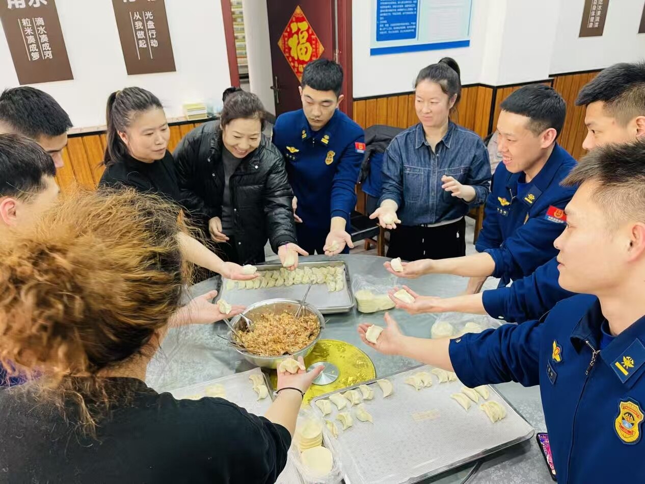 随着热气腾腾的饺子出锅,大家围坐在一起品尝劳动成果,鲜香四溢,暖意入心。此次活动以传统民俗为纽带,不仅让坚守岗位的消防救援人员感受到社区大家庭的温暖与年味,更进一步加深了社区与消防救援队伍的共建情谊,凝聚起“共护平安”的强大合力。