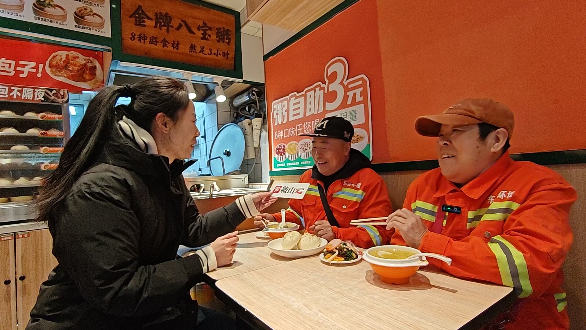 早扫完,夫妻俩走进经常光顾的包鲜道鞍钢总院店,要了四个芹菜肉馅包子,一盘小菜。这里对环卫工人粥免费,两人各盛了一碗。