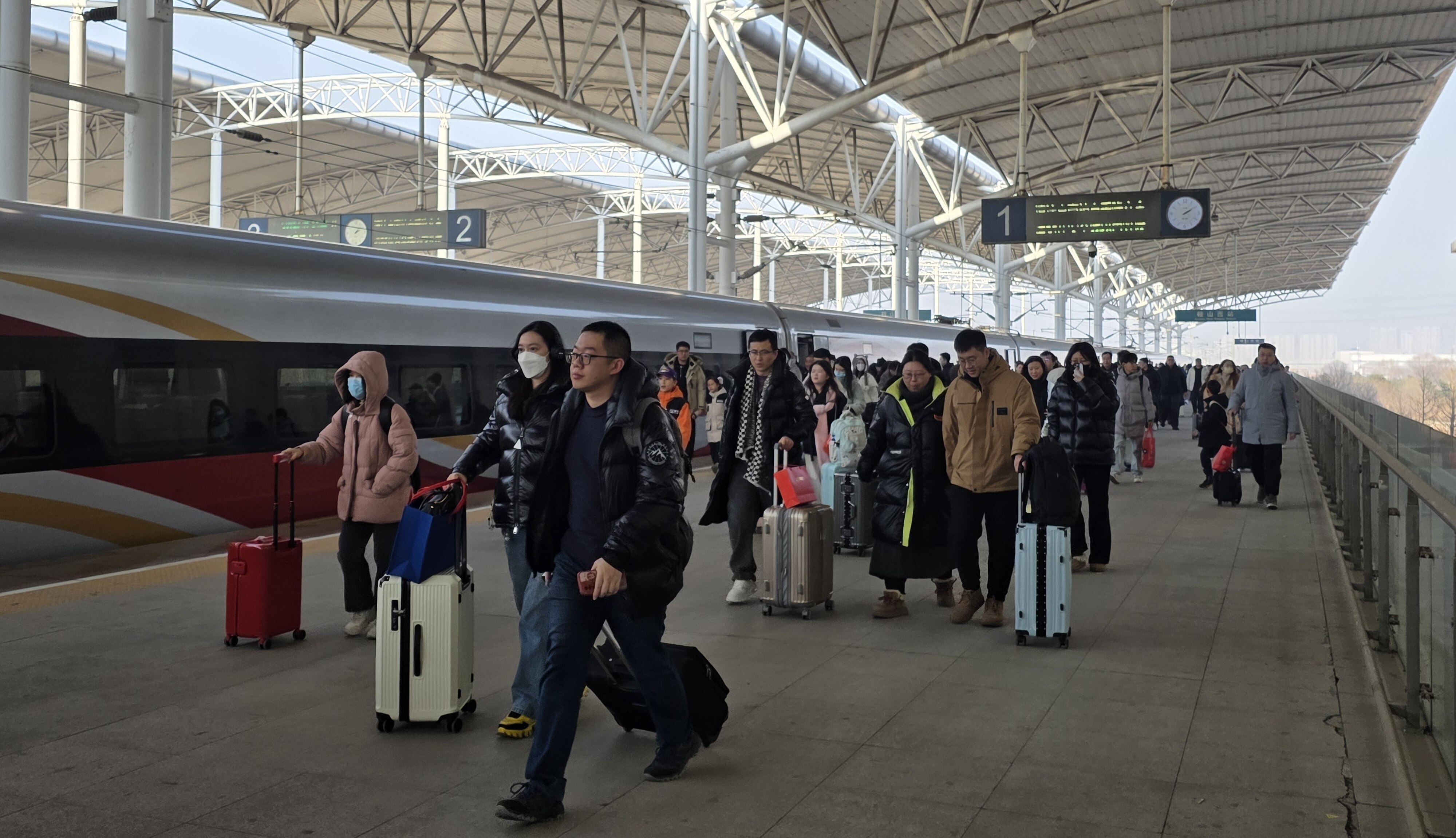 “终于能回家了!”在广东工作的齐先生拎着行李箱和好几个年货袋子,匆匆走出出站口。他一年没回鞍山老家,行李里全是给父母、亲人的年货。“先飞到沈阳,然后高铁回到鞍山,一会家人来接我回去。这次假期有10天。一年了就盼着回家吃顿团圆饭。”