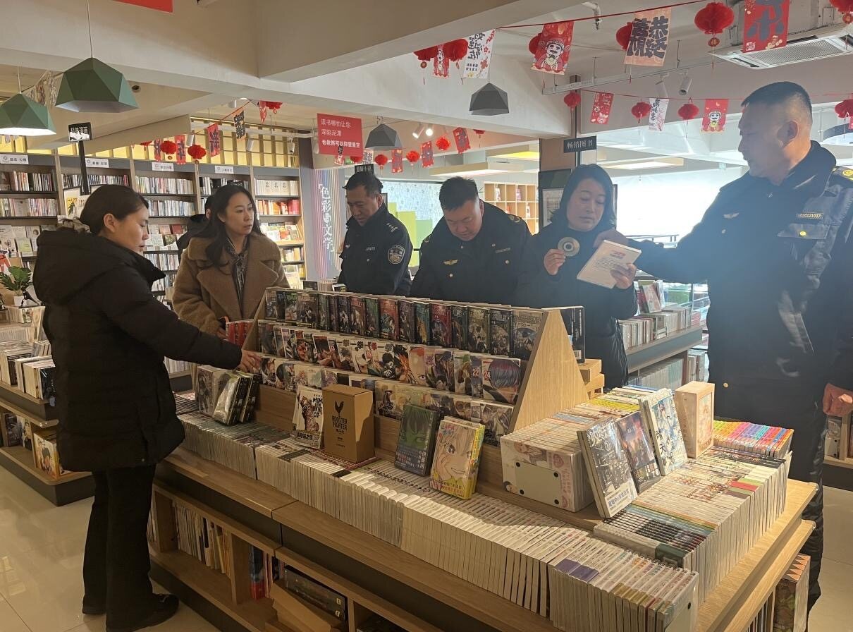 鞍山高度重视节前文化市场安全工作,各地各部门协同发力、联动执法,全力守护群众节日文化生活。此次,铁西区委宣传部联合区市场监督管理局、区应急管理局以及铁西消防救援大队深入到全区重点文化经营场所开展了“扫黄打非”暨安全生产联合专项检查。检查组严查教辅资料、课外读物中的有害内容,核对进货凭证与经营台账,坚决杜绝侵权盗版产品流入,并积极督促商户严把内容准入关与渠道关,确保经营规范、安全可控。
