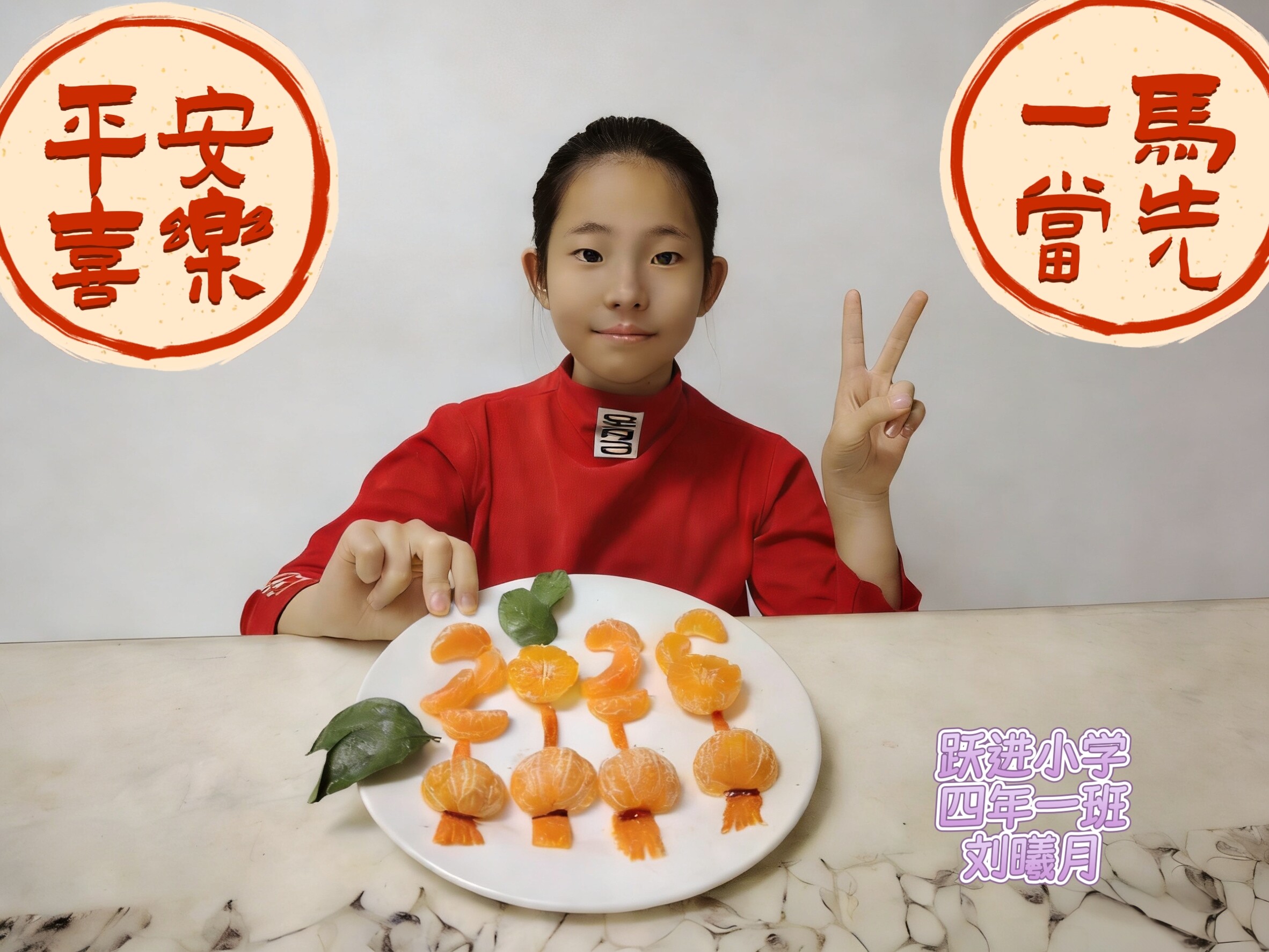 过年的仪式感更藏在厨房的烟火气里。在铁西区跃进小学学生刘曦月家,厨房成了她的“创作天地”。她用新鲜的橘肉做成圆润的“灯笼”,用橘皮剪出飘逸的“流苏”,再用一瓣瓣橘子拼出灵动的“2026”数字。“这是我设计的‘橘子灯笼’果盘,祝大家新的一年橙意满满,马到成功!”她开心地介绍着自己的作品。其他孩子们也没闲着,有的捏出元宝形的饺子,有的用果蔬拼出骏马踏春,在扫尘、贴对联、包饺子的忙碌中,每个孩子都成了家庭里最称职的“小小团圆官”。