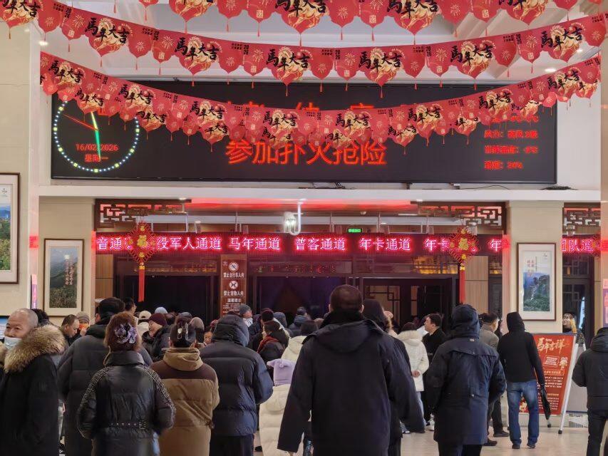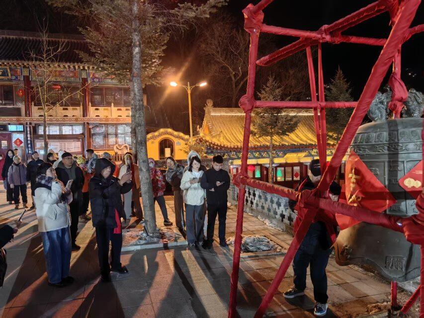 当日22时左右,景区内人头攒动、游人如织,祈福声、欢笑声、钟声交织在一起,处处洋溢着热闹喜庆、祥和团圆的浓浓年味,展现出一派火热非凡、活力满满的新春旅游盛景。