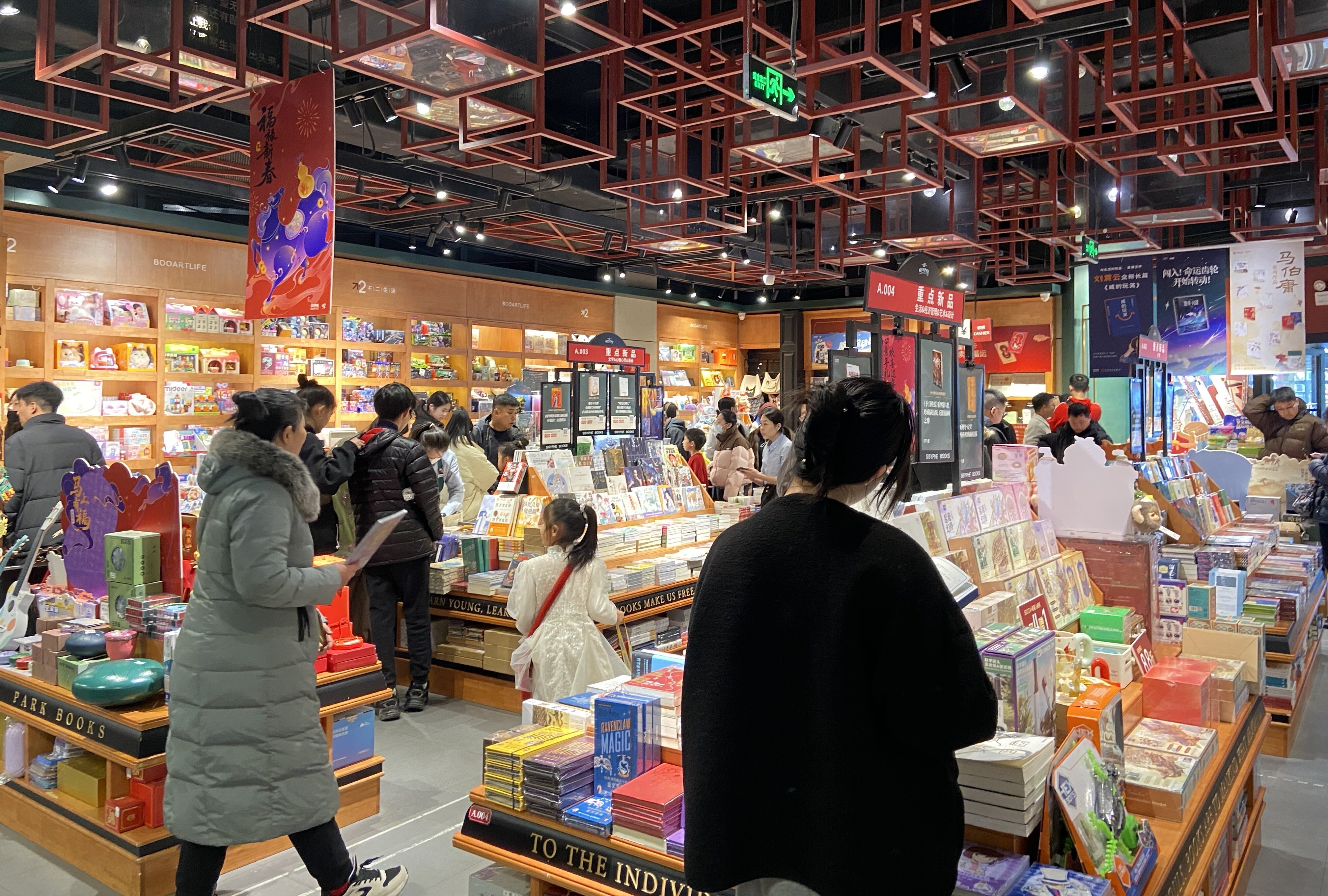 在图书销售方面,文学、漫画、社科类书籍在当天最为畅销。此外,店内特色产品同样热销,拼装类玩具、卡通贴纸、主题文创更是小朋友和年轻人的“心头好”。现场不少市民表示,春节期间逛书店、买书籍,既能放松身心,又能增长知识,比单纯游玩更有收获。