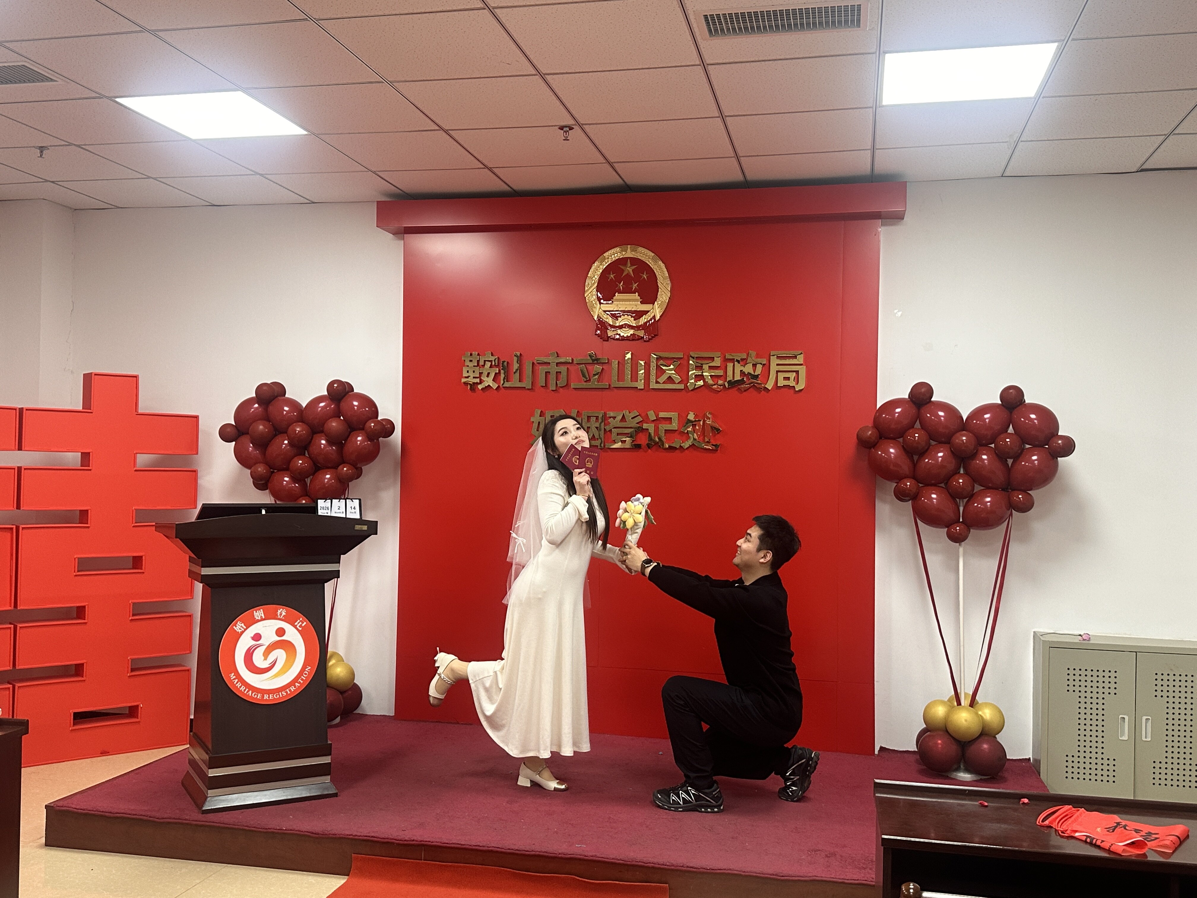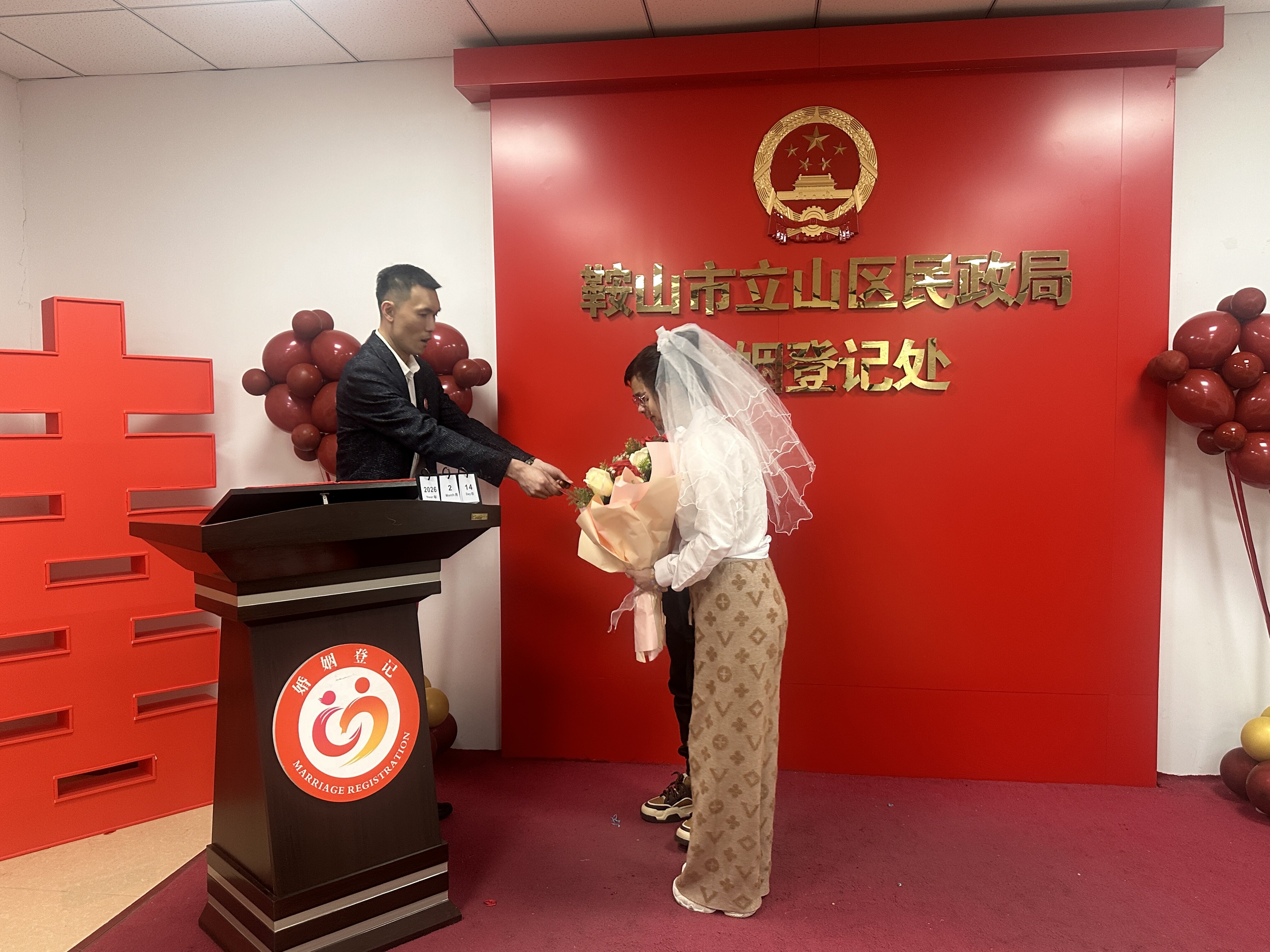 为应对登记高峰,全市婚姻登记机关提前部署多项便民举措:增设“潮汐窗口”动态调整人力,推行“辽事通”APP 预约优先与现场分流双轨机制,开通绿色通道减少排队等候时间;当日实行弹性工作制,中午不休、延迟下班,确保所有到场新人“应登尽登”。同时,立山区作为辽宁省第二批婚俗改革示范区,登记处向新人发放“移风易俗倡议书”,倡导抵制高价彩礼、大操大办,树立“重登记、轻婚礼”的文明婚嫁理念,并提供婚前辅导、矛盾调解等服务,从源头护航婚姻幸福。