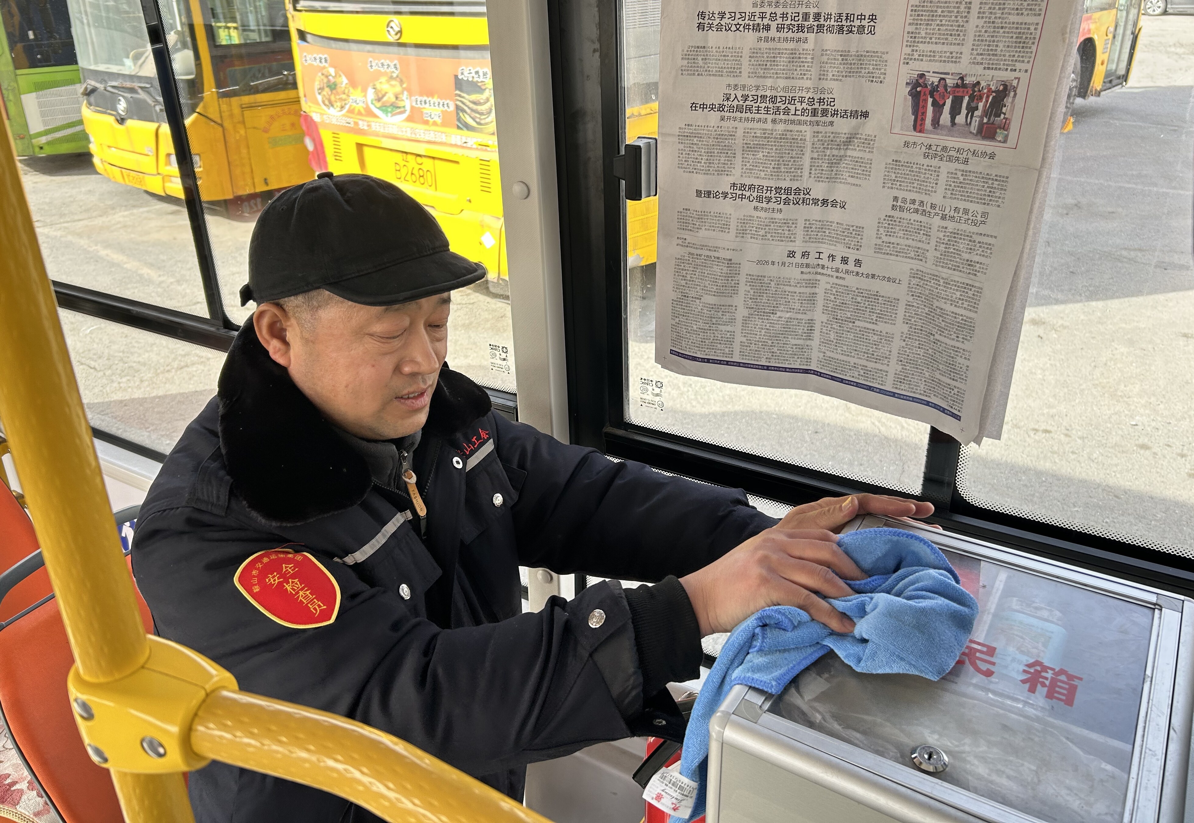 2月19日,大年初三,鞍山的阳光格外透亮。清晨6点,风还带着凉意,却吹不散街头巷尾的年味。职教城公交场站里,51岁的包平已经站在了他的2路公交车旁,藏青色制服的袖口挽着,手里攥着一块抹布。开车前把车擦干净,是他几十年的习惯。