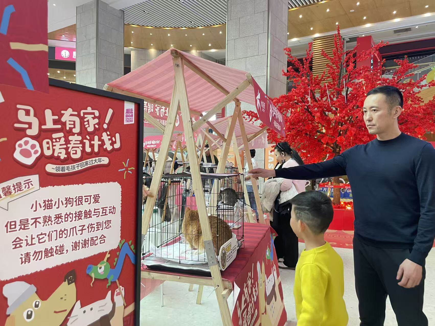 除了逛吃,商场在初三、初四推出的“马上有家,暖春计划”宠物领养活动。不少家长带着孩子围在展台前,和小动物互动。13岁的小志愿者孙佳悦忙着给小朋友讲解,她说:“我和爸爸妈妈一起来参加这个志愿活动,希望小动物都能被领养,不被遗弃。”一旁的家长连连点头,觉得这样的活动让年过得更有意义。