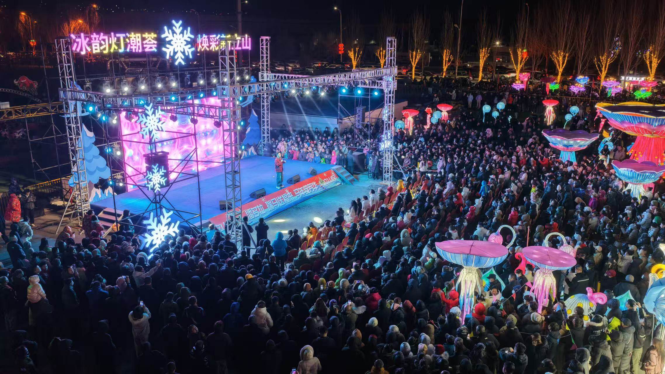 大年初六傍晚,立山区南沙河畔灯火璀璨、人潮涌动。由立山区携手辽宁浔舟文化发展有限公司共同打造的“潘多拉奇幻夜,马年嗨不停”立山幸福年活动,自贡非遗彩灯点亮夜空,本山传媒旗下多位百万粉丝网红轮番登台,全程免费向市民开放,为春节假期增添了一道流光溢彩的风景线。