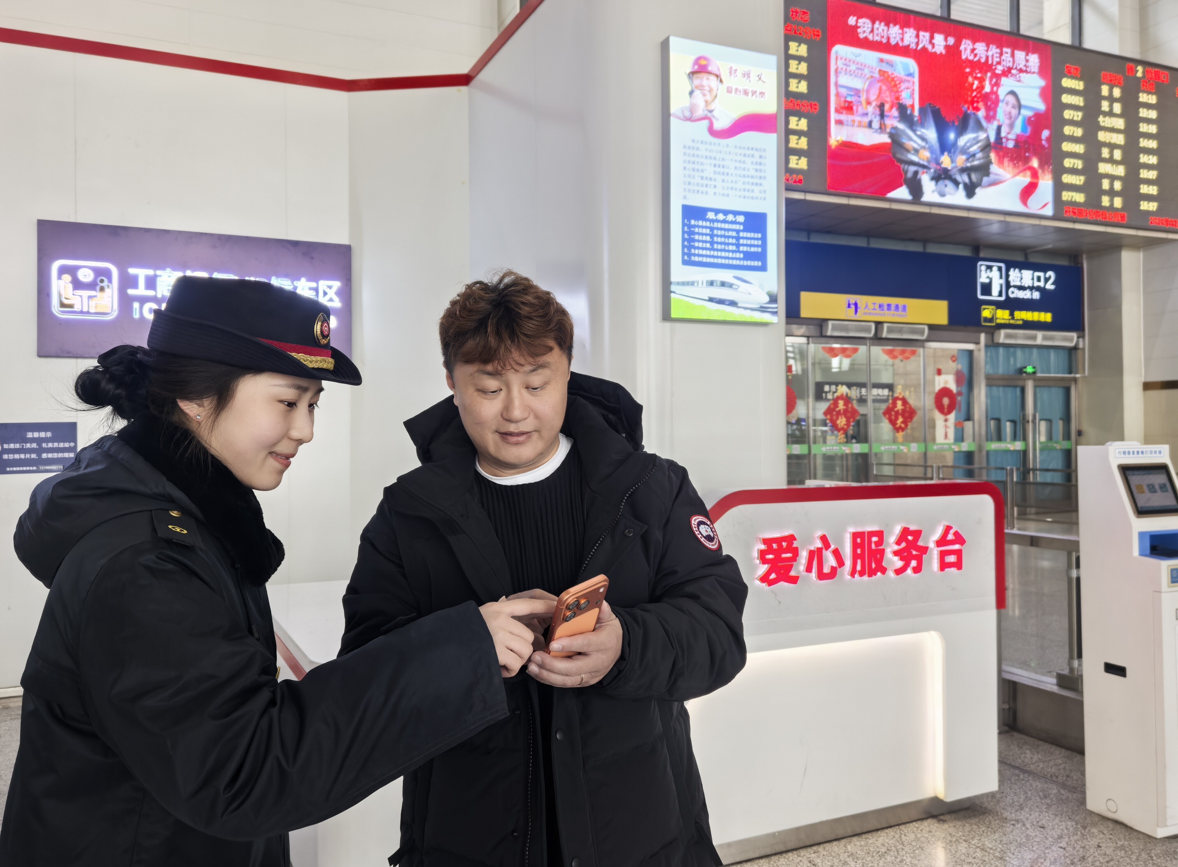 鞍山车务段提前对各车站的空调、饮水设备进行全面检修,高峰时段增配安检、检票人员,优化进出站流线,最大限度减少旅客排队时间。各站在候车区张贴新春窗花、悬挂红灯笼,还增设轮椅和重点旅客候车区,为老弱病残孕群体开辟绿色通道,让旅途满是年味与暖意。针对返程高峰,车站加开了沈阳、大连方向的临时旅客列车,动态调整检票口开放数量,确保旅客“走得顺、走得暖”。