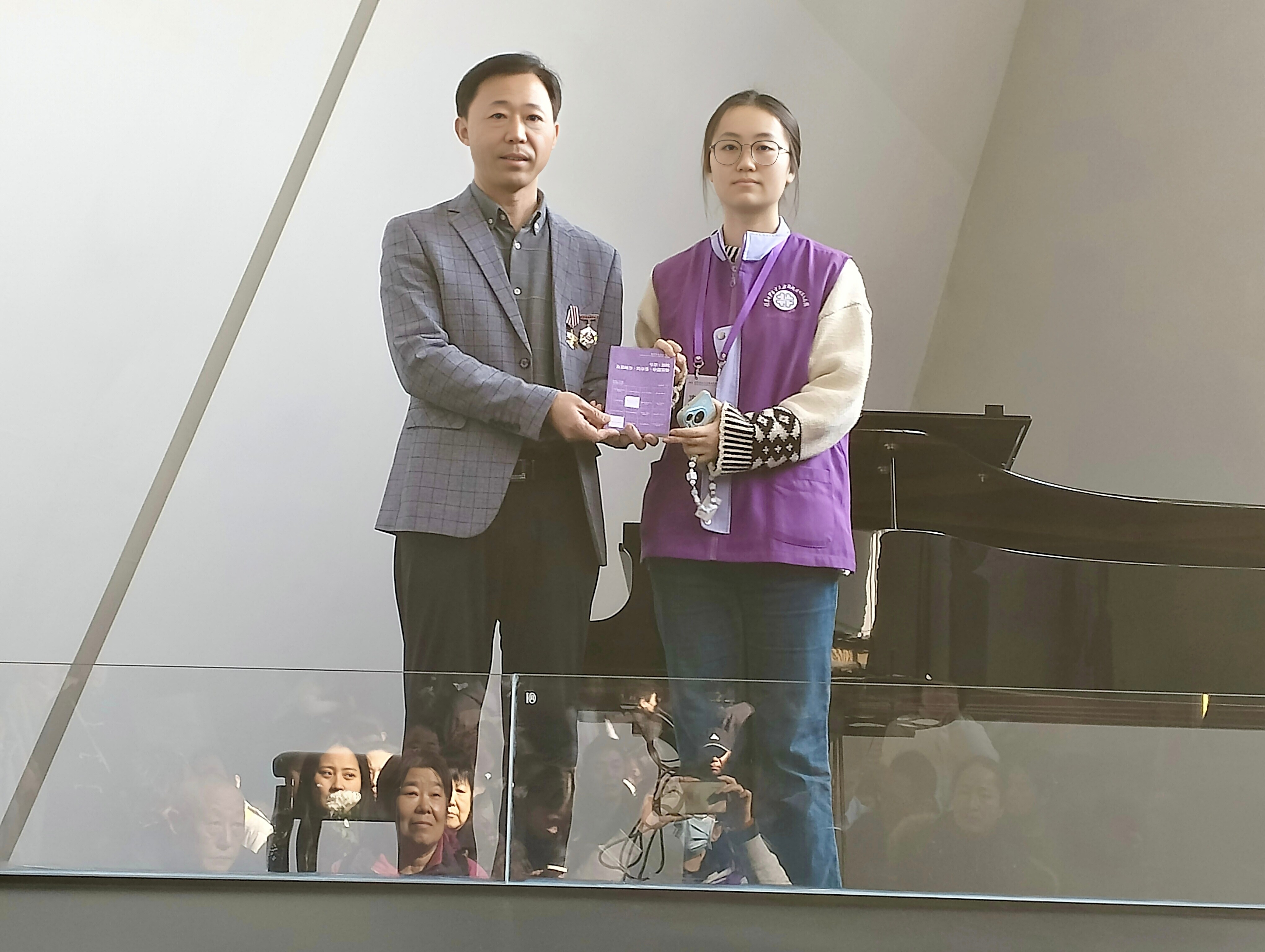 农历正月初二,侵华日军南京大屠杀遇难同胞纪念馆内人流如织。孙凯受邀参加“和平之声”“祭忆之声”主题活动,与00后志愿者、曾担任国家公祭日《和平宣言》领诵的中南大学学生乐筱懿同台,共同朗诵南京作家冯亦同作品《江东门的钟声》。深情有力的诵读传递出对和平的呼唤、对生命的珍视与对历史的深刻反思,现场观众屏息聆听,不少人热泪盈眶,掌声经久不息。活动中,乐筱懿题写“铭记历史、珍爱和平”与鞍山志愿者共勉。