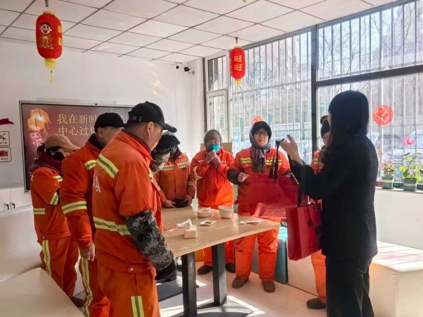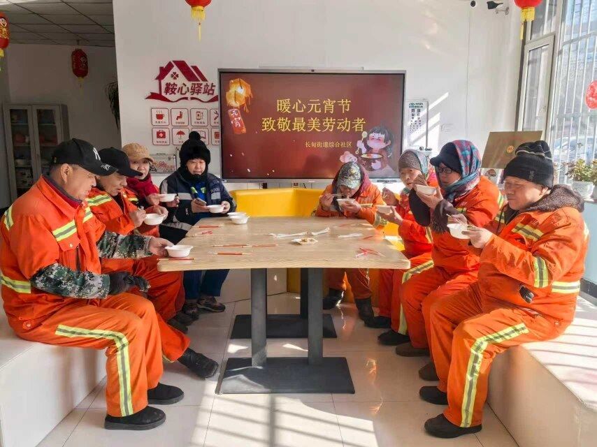 2月28日,铁东区长甸街道综合社区洋溢着别样的温情。一场以“一碗汤圆藏暖意,温馨时光敬橙衣”为主题的元宵节活动在这里暖心举行,为坚守在一线的环卫工人提前送上节日的祝福。