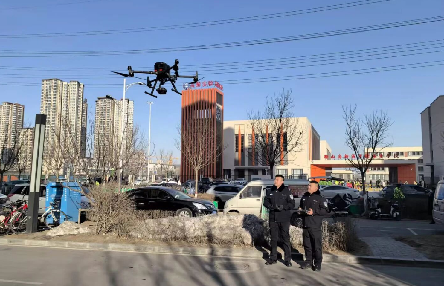 市公安局还充分整合8座无人机机场与10架无人机力量,构建常态化空中巡防体系,警航中队深入指导,在上下学高峰时段,按照“定人、定岗、定责”要求开展常态化空中巡防,确保护学时段重点区域全覆盖。警务无人机充分发挥视角高、角度大、覆盖广的优势,将巡查半径延伸至周边路口、街巷,有效消除了传统地面巡逻的视野盲区。这一“空中预警、地面处置”的联动模式,实现了交通拥堵、人员聚集等各类突发情况的第一时间发现、第一时间处置,真正做到“看得见、叫得通、调得动、处得快”。
