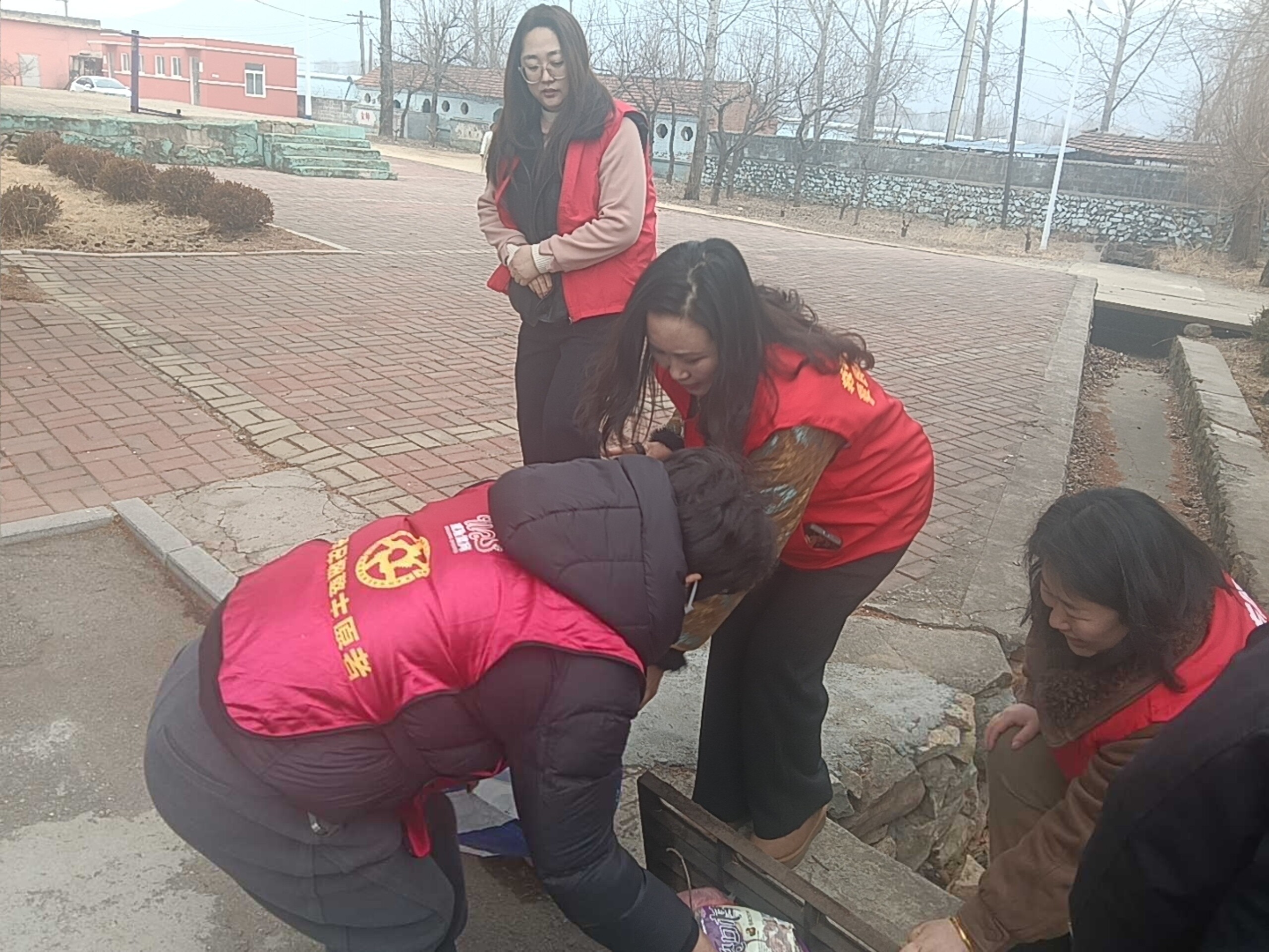 在校园花坛边的排水口,很多枯枝落叶堆积在铁箅子上,志愿者带着孩子们一起用手将杂物抠下来,确保下雨时排水畅通不会出现积水情况。孩子们有样学样和家长一起劳动,学到了在教室里学不到的东西。半小时劳动后,志愿者又投入到护校工作中去了,孩子们走进校园内,迎接他们的不仅是志愿者的安全守护,还有整洁如初的校园。