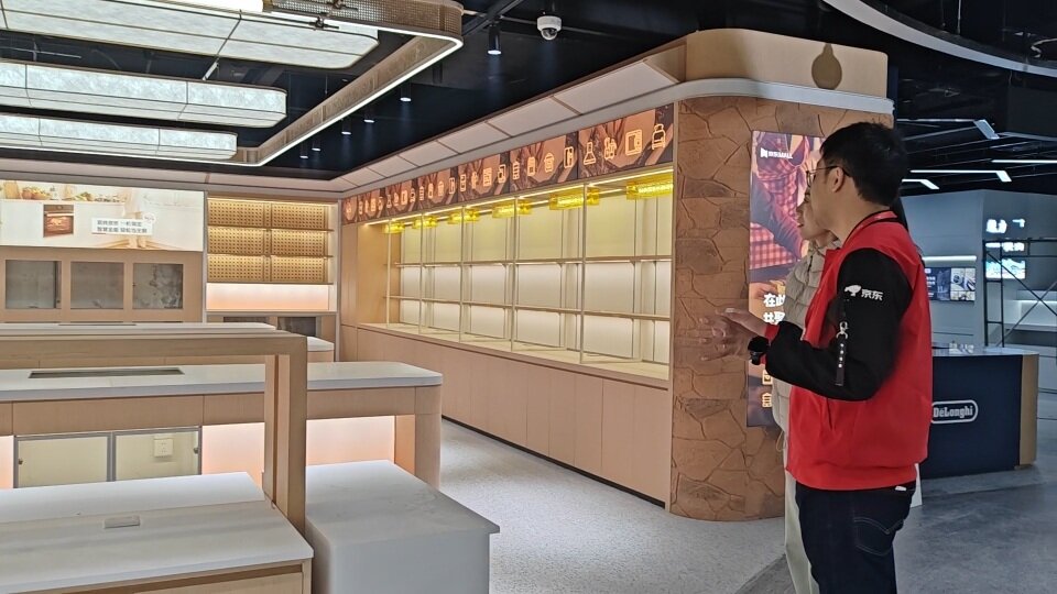 走进门店内部,里面还在紧张筹备中。“这里与传统家电卖场有什么不同?”“这家店是鞍山首家京东自营的科技体验型消费电子和智能家居主题商场,主营消费电子、新潮家电、建材卫浴、家具家居等产品,是京东在线下的新潮产品展示中心、用户体验互动中心和城市级服务中心。”王德岩介绍道。