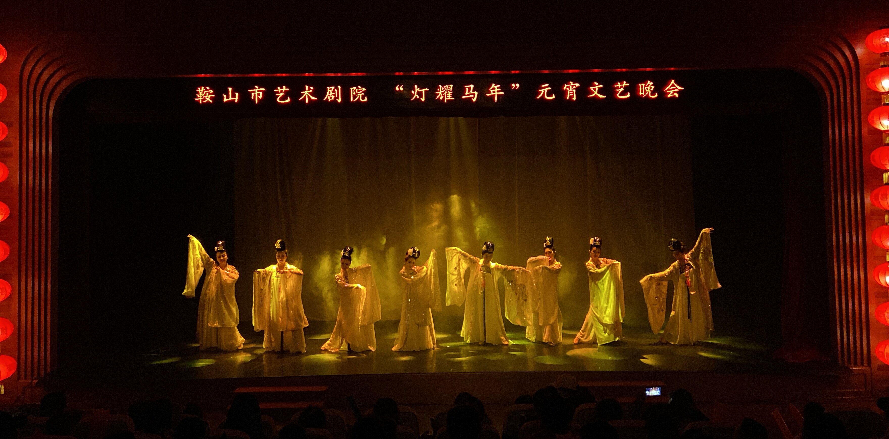 19:00,元宵晚会在开场舞《金羽霓裳》中拉开帷幕。舞者们身着华服翩跹起舞,灵动身姿与璀璨光影交相辉映,瞬间点燃现场气氛。随后,古琴与手碟《山雨》、诗词四首朗诵表演、男生二重唱《大东北我的家乡》、相声《新春祝福》、小品《婚托》以及京剧昆曲《贵妃醉酒》《牡丹亭》等精品节目轮番登场……整场晚会融传统形式与时代新意于一体,汇聚了多元艺术表现形式,节奏张弛有度、节目各具特色,现场气氛热烈,欢声笑语不绝于耳。
