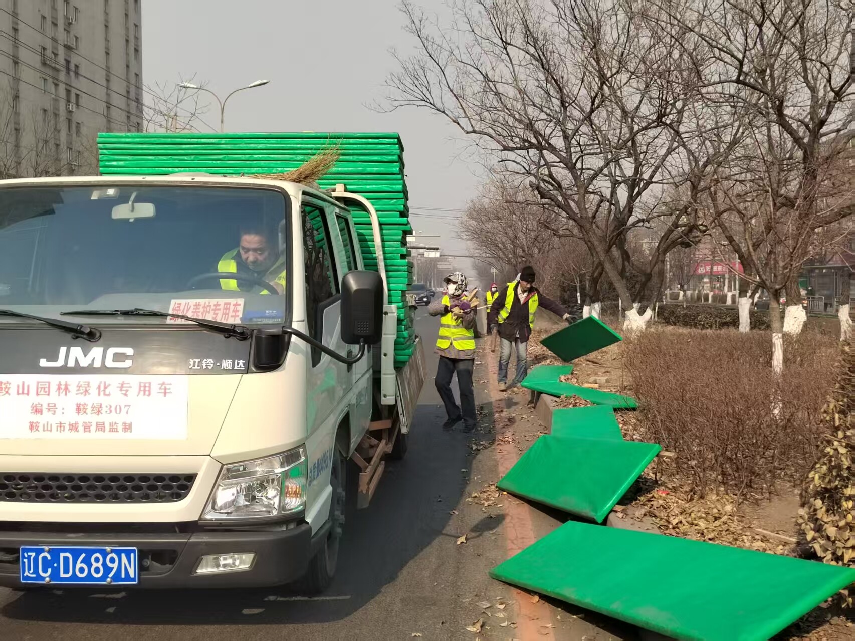“这些防雪帐在冬天是苗木的‘保暖衣’,帮它们挡住风寒雨雪,现在气温逐步回升,再不拆除就会影响苗木通风透光,耽误抽枝发芽。”养护负责人介绍,解放东路作为城区主干道,绿化带内苗木种类丰富,冬季铺设的防雪帐有效抵御了低温冻害,为苗木安全越冬筑牢了屏障。