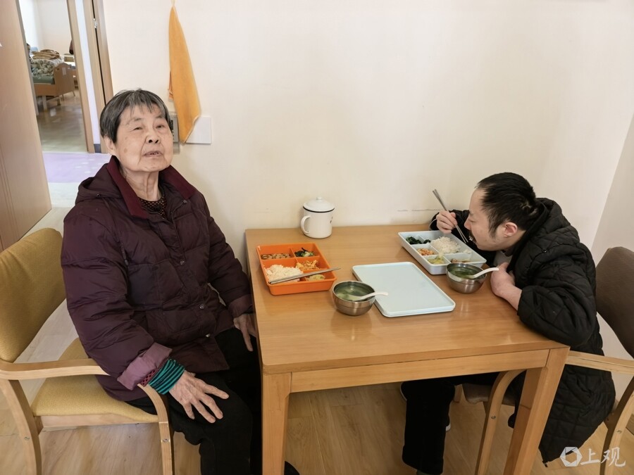去年,“双人间”改造完成,辟出几间,特设了“老养残”专区,章阿婆母子成为了第一对入住者。“现在每天能看到儿子,章阿婆明显安心多了。有母亲在身边陪着,她的儿子也比过去爱说话了。”梁燚说。