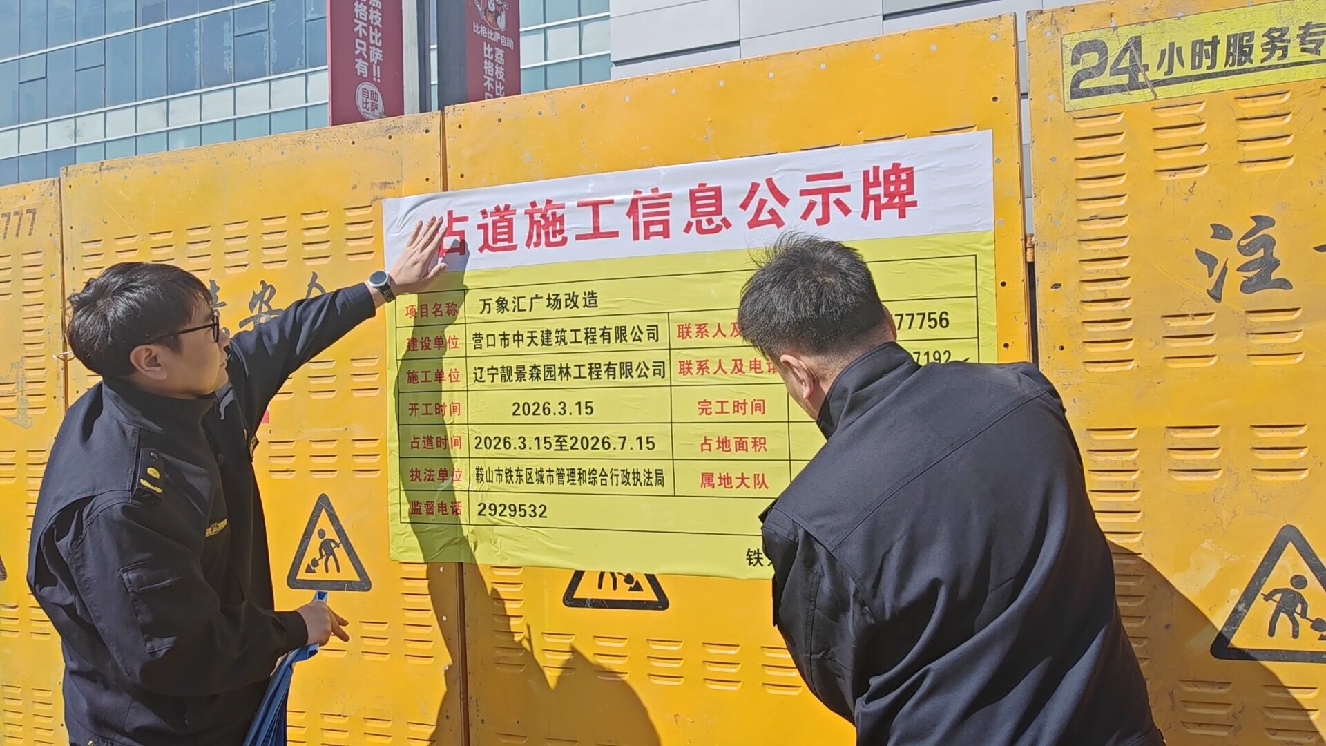 “施工过程中一定要注意扬尘和建筑垃圾排放。”现场,铁东区城管局副局长李先成细致讲解施工期间市容管理相关要求以及注意事项。李先成说:“当我们了解到万象汇想尽快办理施工围挡审批手续时,变‘坐等审批’到‘上门服务’,第一时间组织工作人员到万象汇进行现场办公,逐一核查施工区域范围,明确围挡设置规范,并全程协助企业完善审批材料,当场便完成了施工围挡审批手续的办理工作,切实节约了企业的跑腿时间和办事成本。”