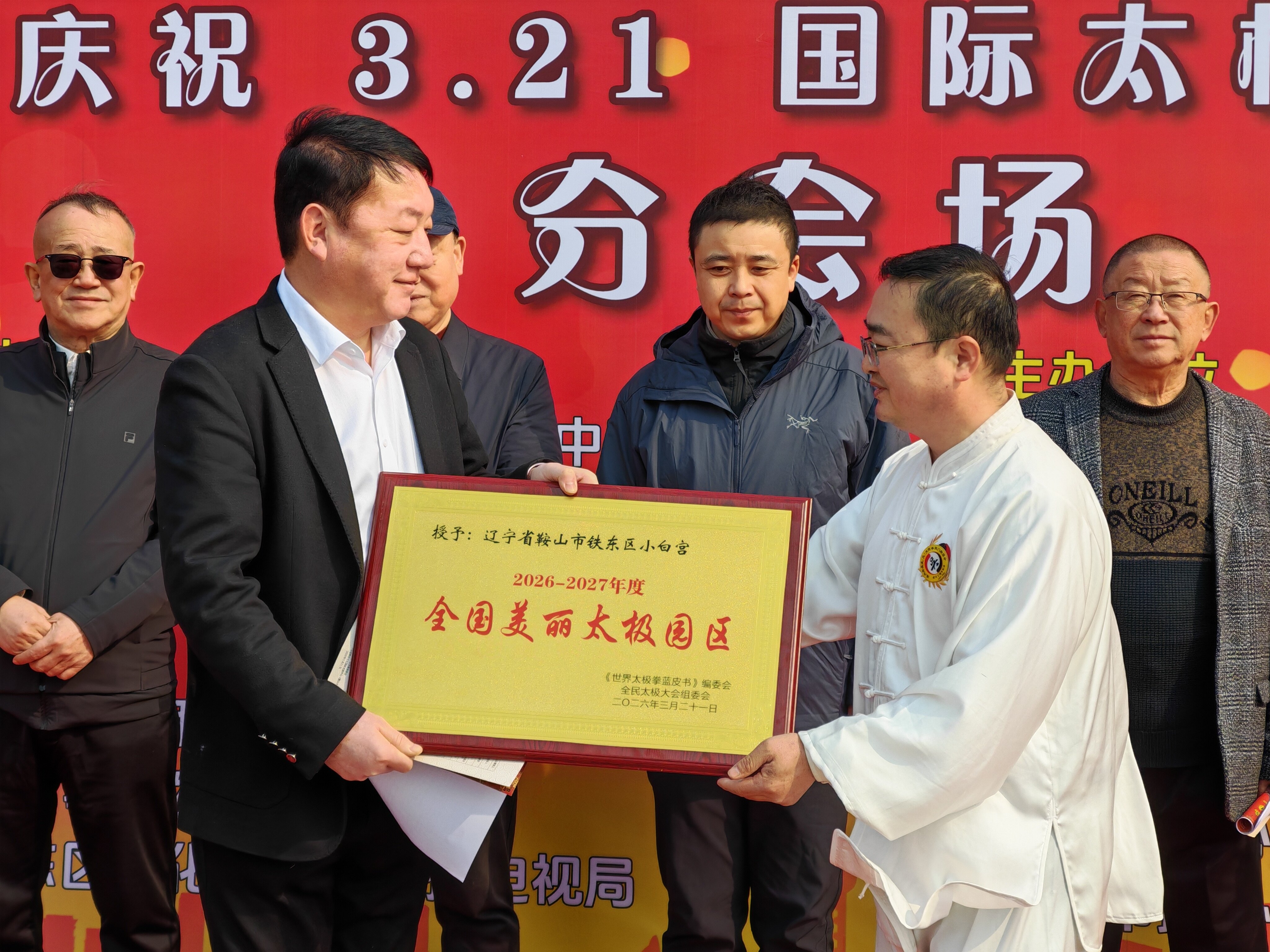 本次活动由鞍山市文旅广电局(市体育局)、鞍山市体育事业发展中心、鞍山市铁东区文旅广电局指导,鞍山市武术协会、鞍山市新兴产业发展促进会主办。“小白宫”作为鞍山网红打卡地之一,经《世界太极拳蓝皮书》编委会、“美丽太极城乡”评价委员会评定,被授予“全国美丽太极园区”称号,标志着以其为核心的太极文旅项目正式纳入“跟着太极游中国”的国家级精品线路。
