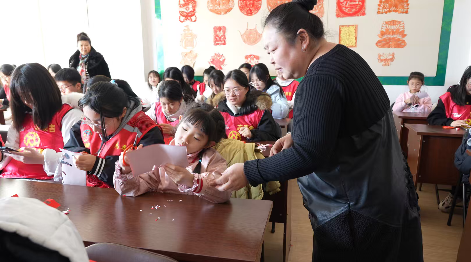 连日来,在岫岩文化馆老年大学的剪纸课堂,一股浓郁的满族风情扑面而来。李余正伏在案前,手中的剪刀如同游龙戏凤,一张普通的红纸在她的指尖瞬间幻化成灵动的图案。她耐心地为学员们讲解着每一个剪刻的细节,将这门古老的技艺倾囊相授。