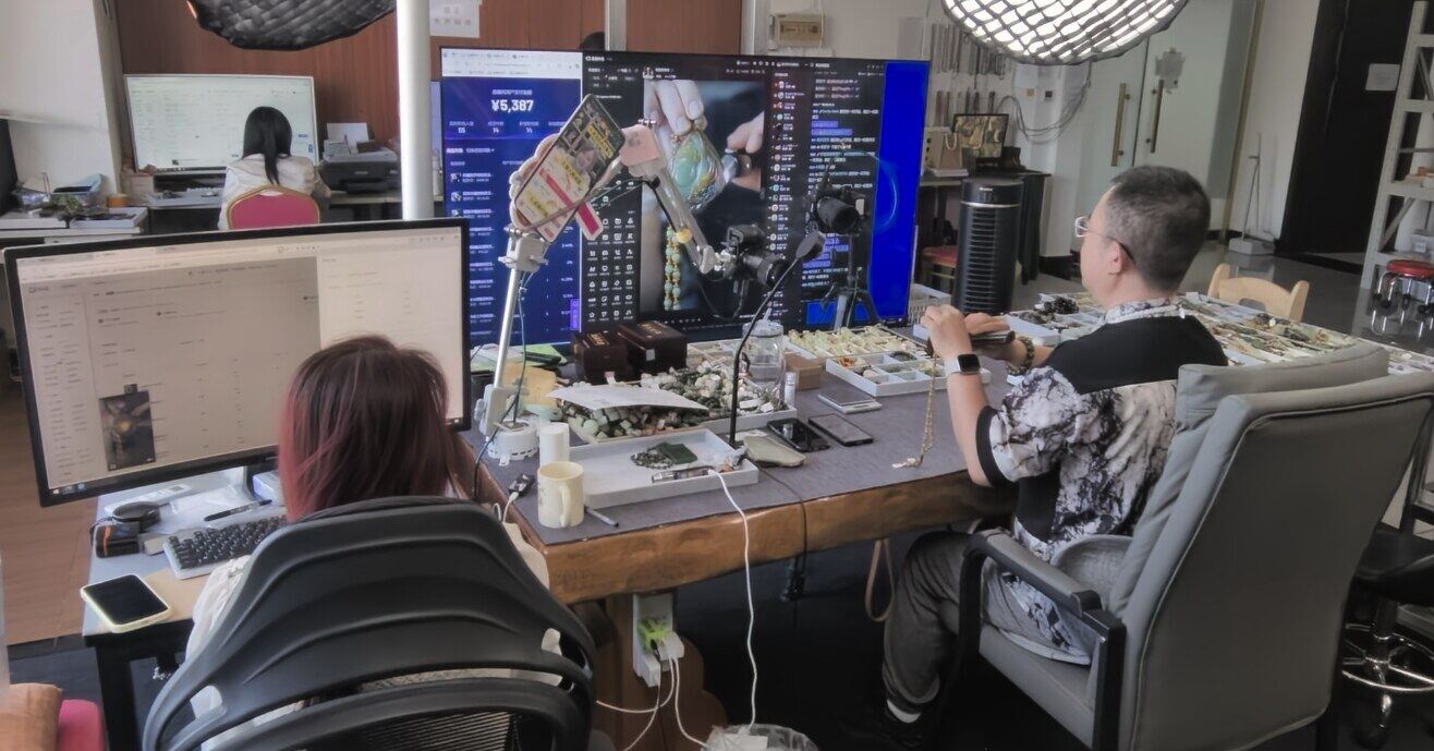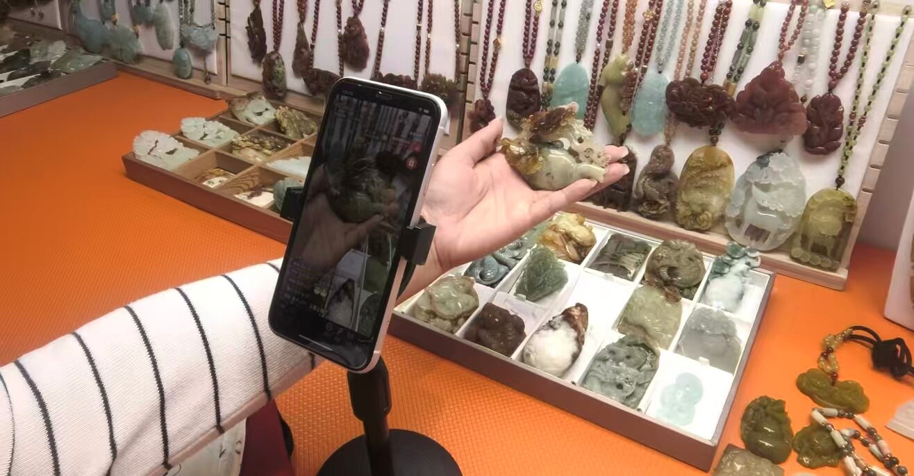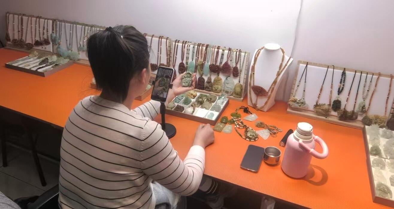 “家人们,这是咱岫岩本地的岫岩玉,质地温润,支持全国复检。”近日,辽宁笛尔逊电商科技产业园内的电商直播间里,弹幕滚动不停。隔壁的云仓储物流包装车间,传送带飞速运转,工人们精准操控着打包设备,将裹好缓冲膜的玉件、山野菜礼盒、柞蚕丝绸制品送上流水线,等待集中装车。